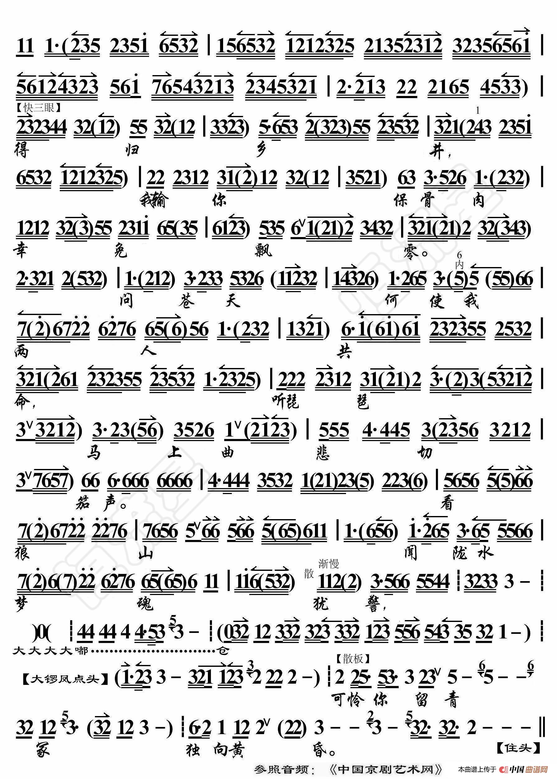 关于《文姬归汉·见坟台哭一声明妃细听》曲谱的评论