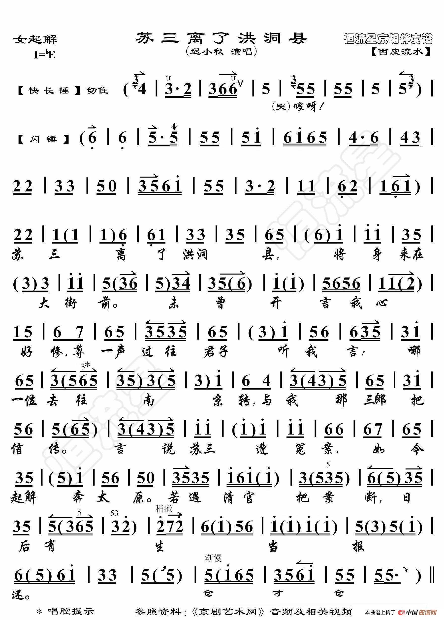 女起解·苏三离了洪洞县(京胡伴奏谱)