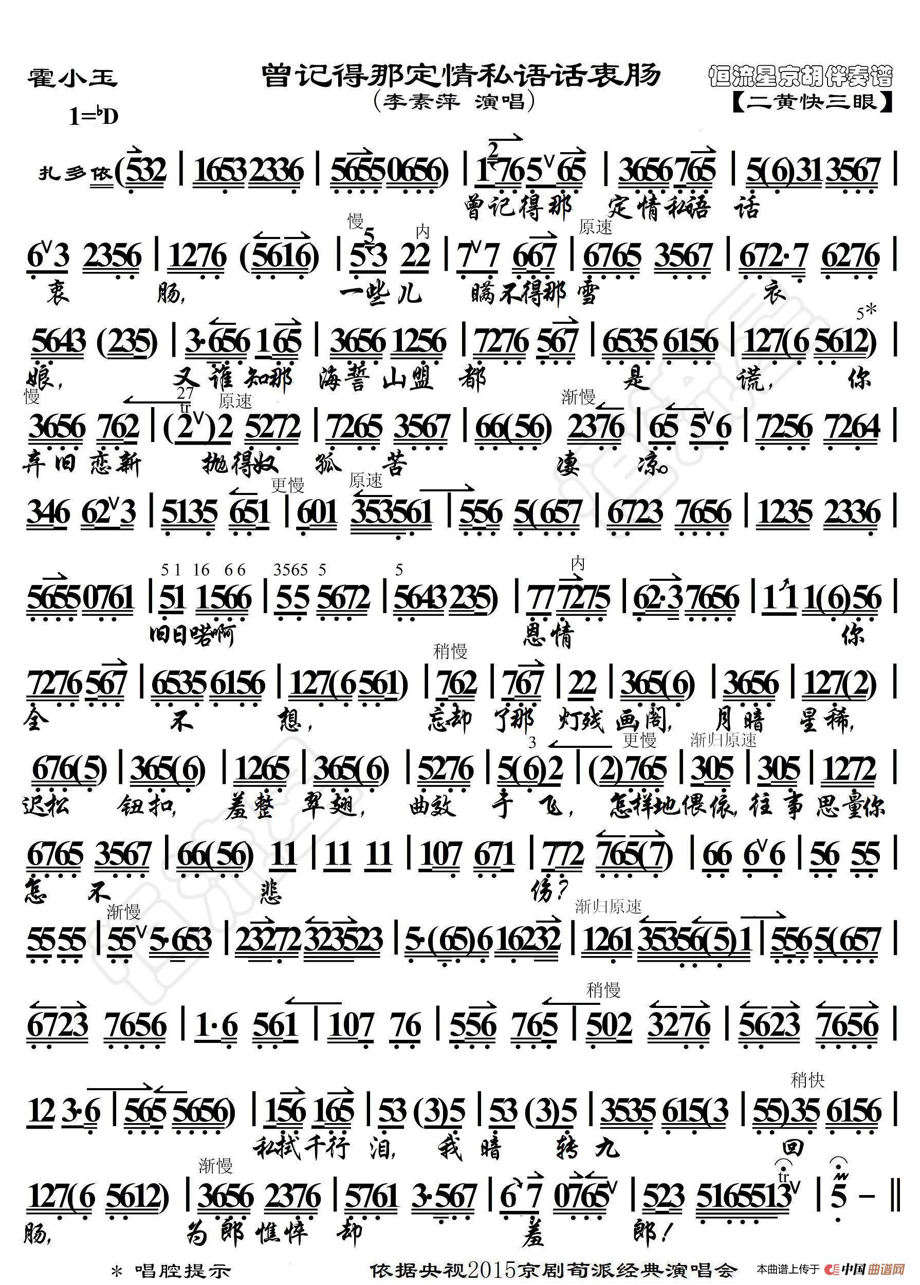 霍小玉·曾记得那定情私语话衷肠(京胡伴奏谱)