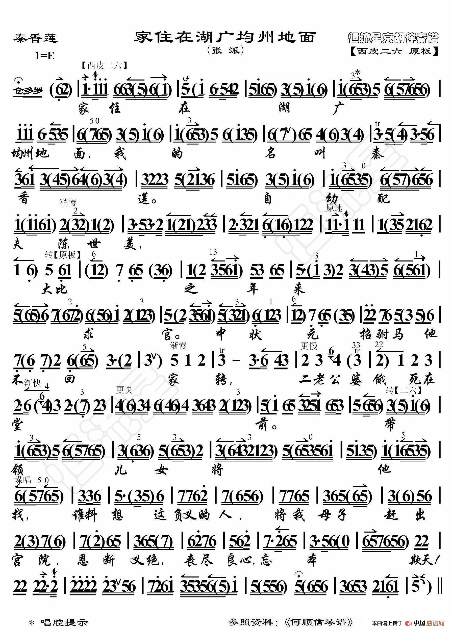 秦香莲·家住在湖广均州地面(京胡伴奏谱)