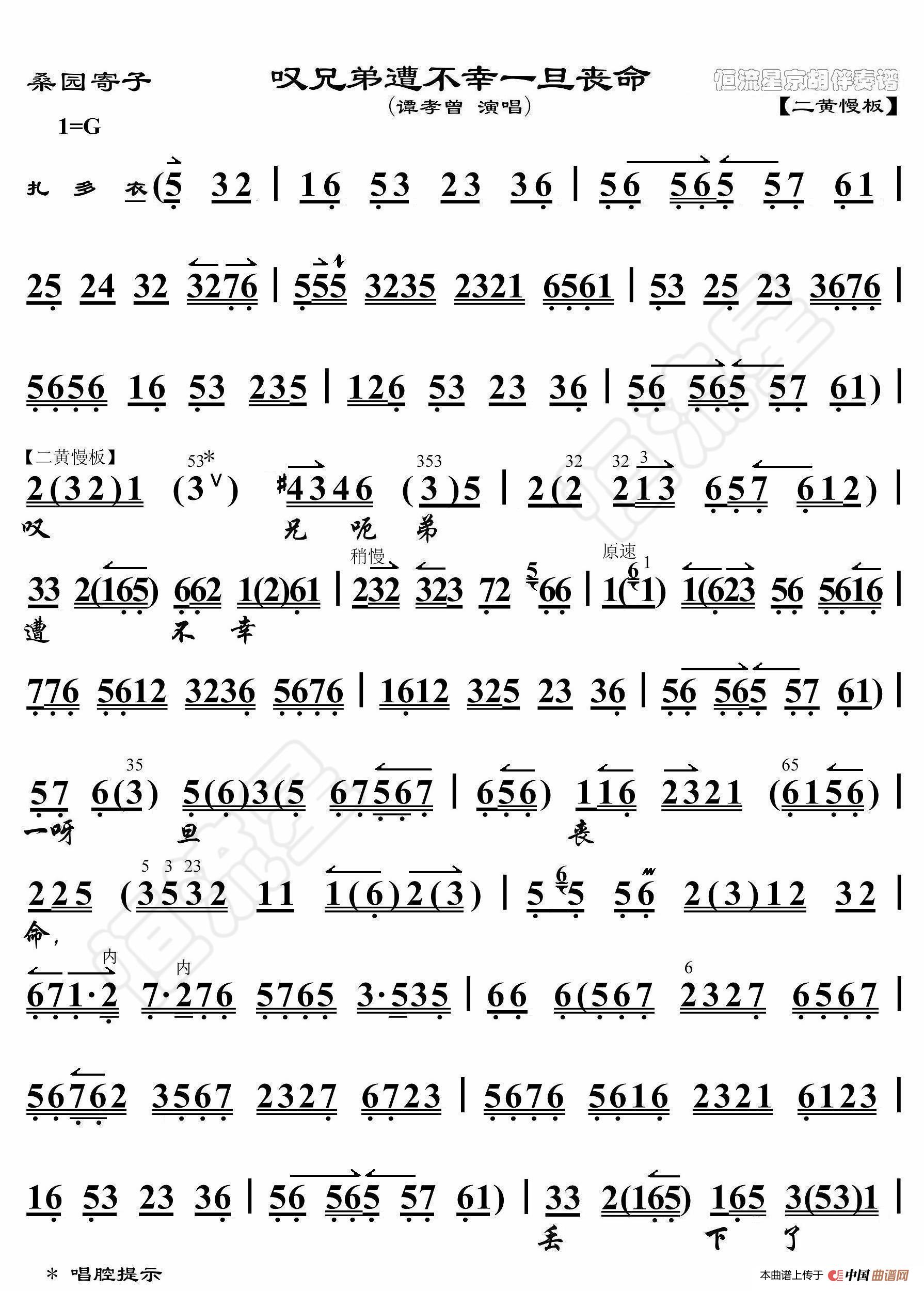 桑园寄子·叹兄弟遭不幸一旦丧命(京胡伴奏谱)