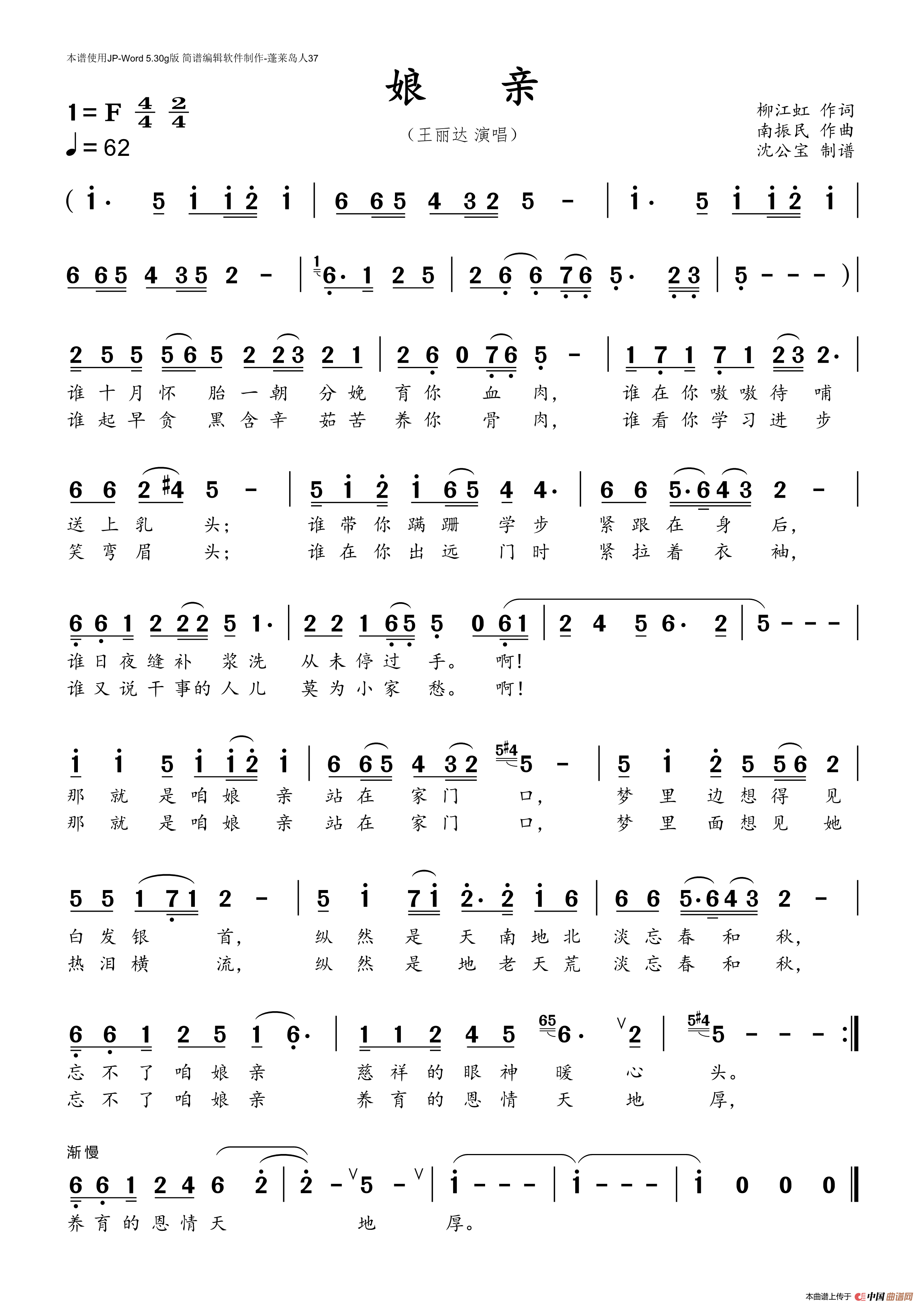 作词: 柳江虹 作曲: 南振民 演唱:王丽达