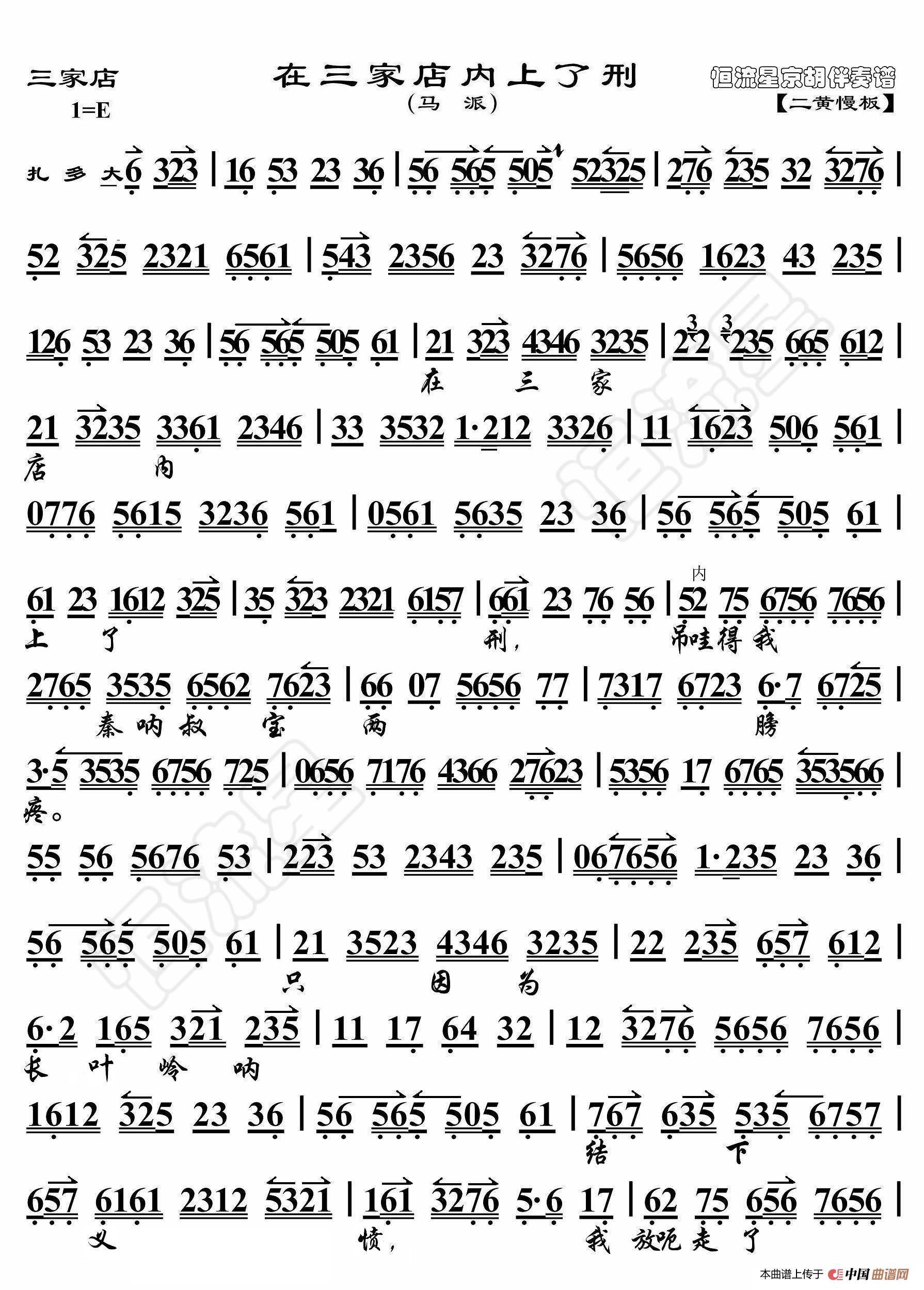 三家店·在三家店内上了刑(京胡伴奏谱)