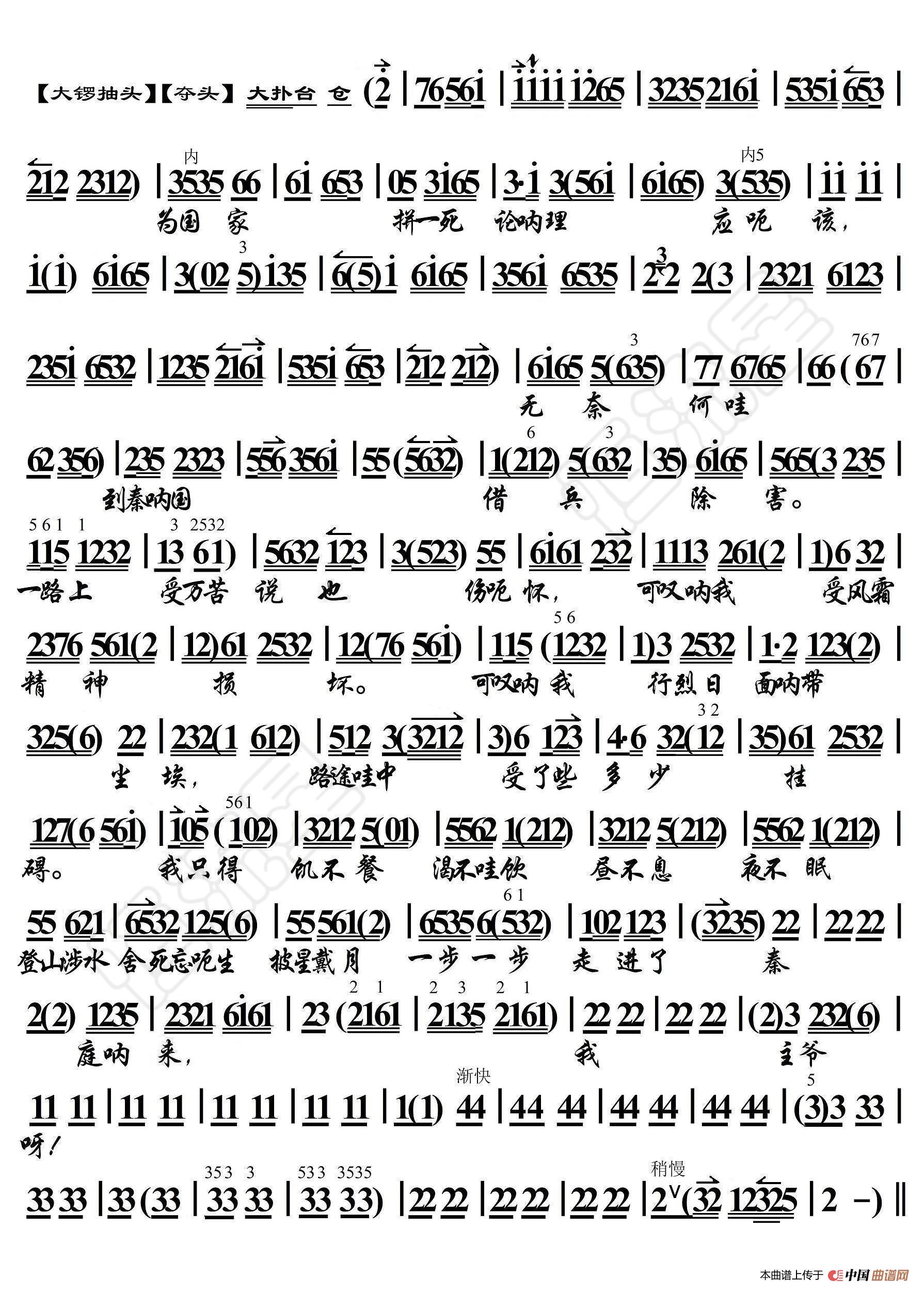 关于《哭秦庭·申包胥站立在秦庭以外》曲谱的评论