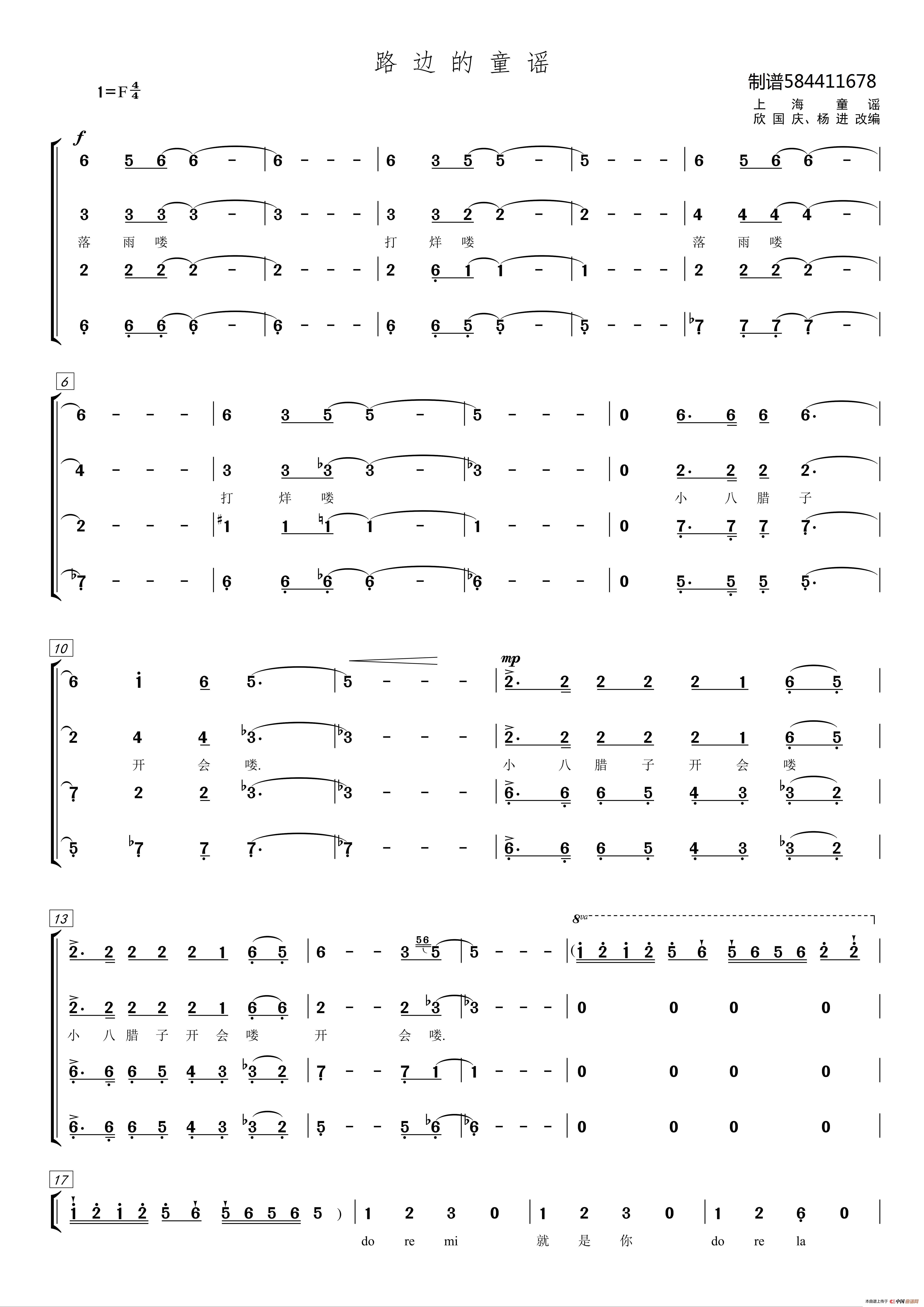 提示:在曲谱图片上单击右键,选择“图片另存为...”即可将曲谱保存到您的电脑中,打印时候可将图片插入到WORD中,调整合适大小打印即可。