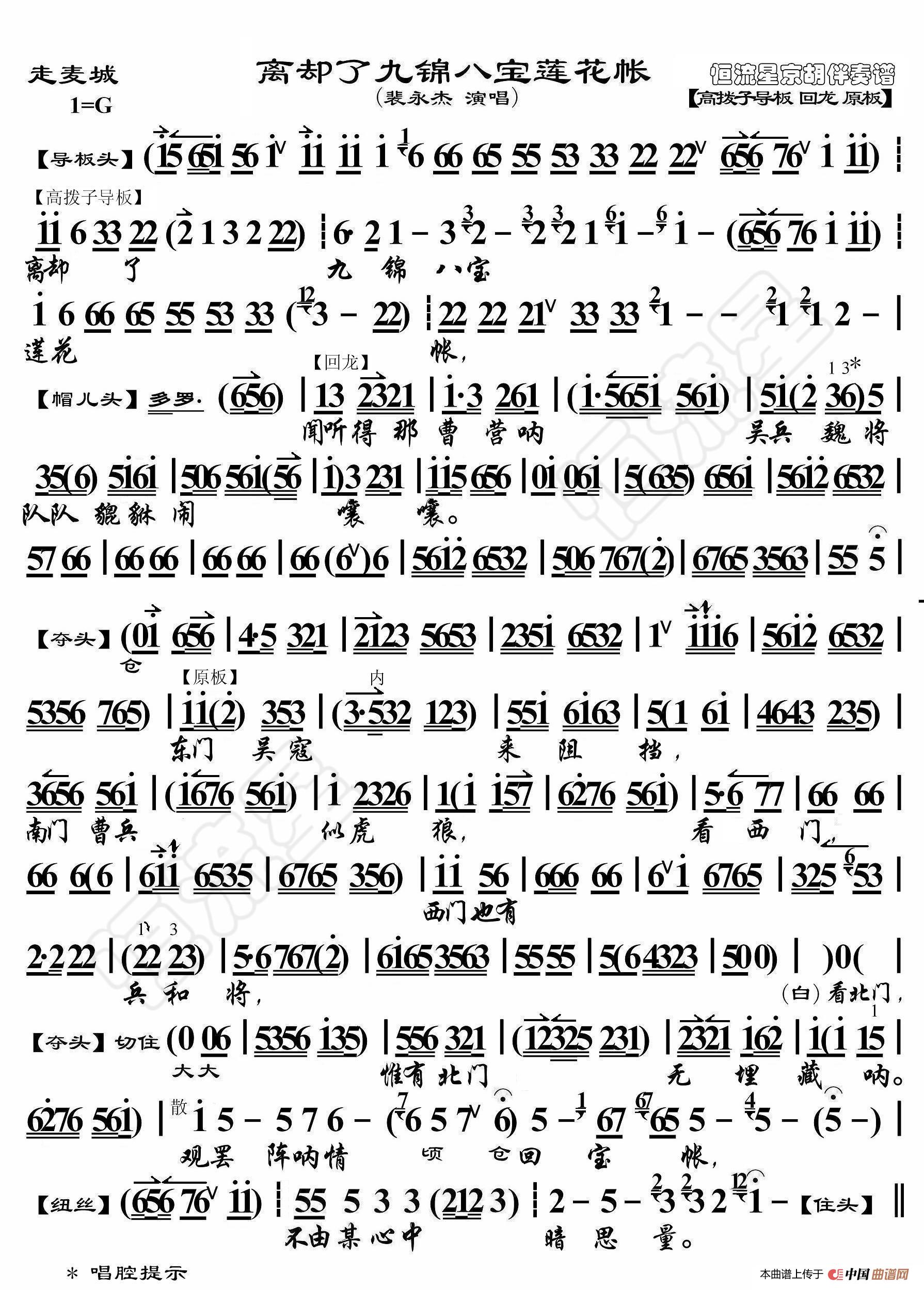 走麦城·离却了九锦八宝莲花帐(京胡伴奏谱)