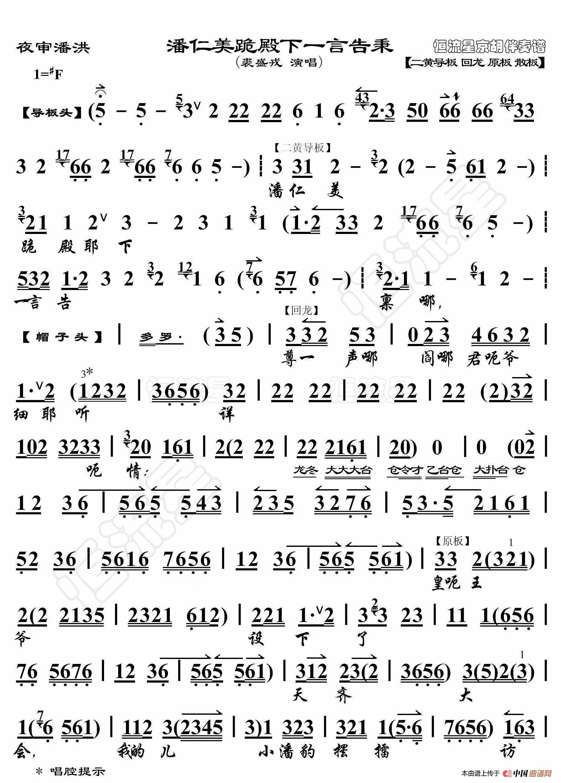 夜审潘洪·潘仁美跪殿下一言告秉(京胡伴奏谱)
