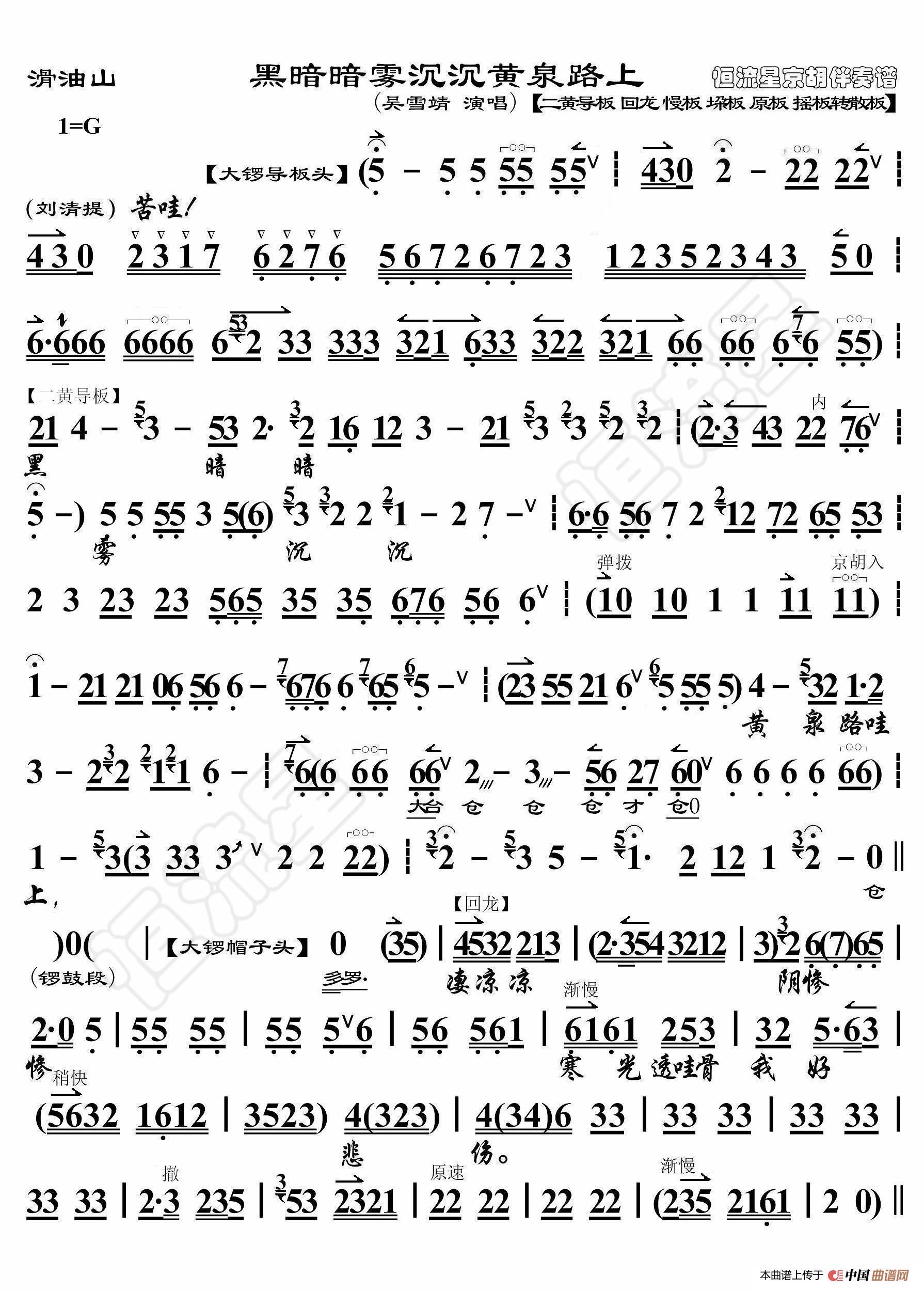 滑油山·黑暗暗雾沉沉黄泉路上(京胡伴奏谱)