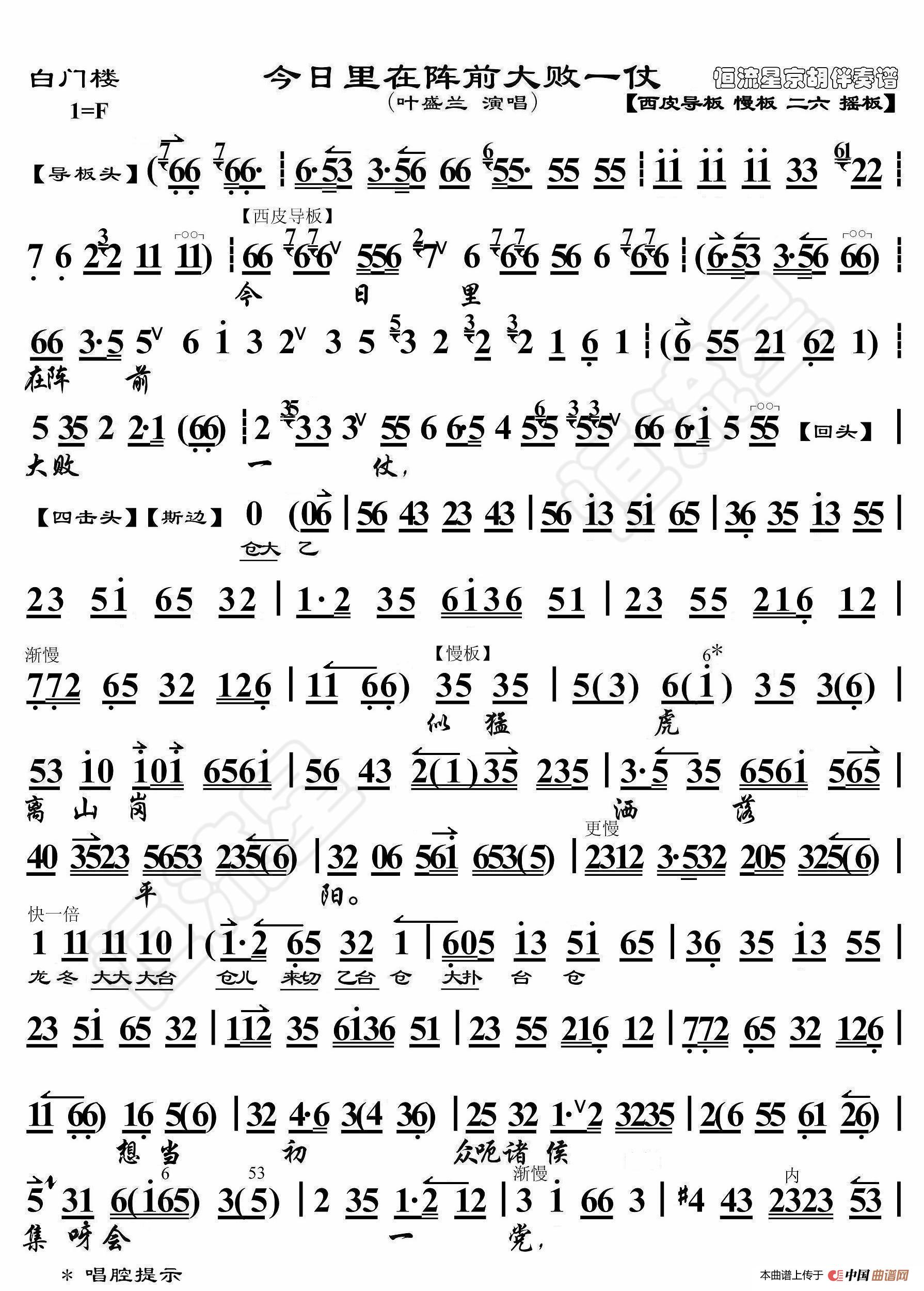 关于《白门楼·今日里在阵前大败一仗》曲谱的评论