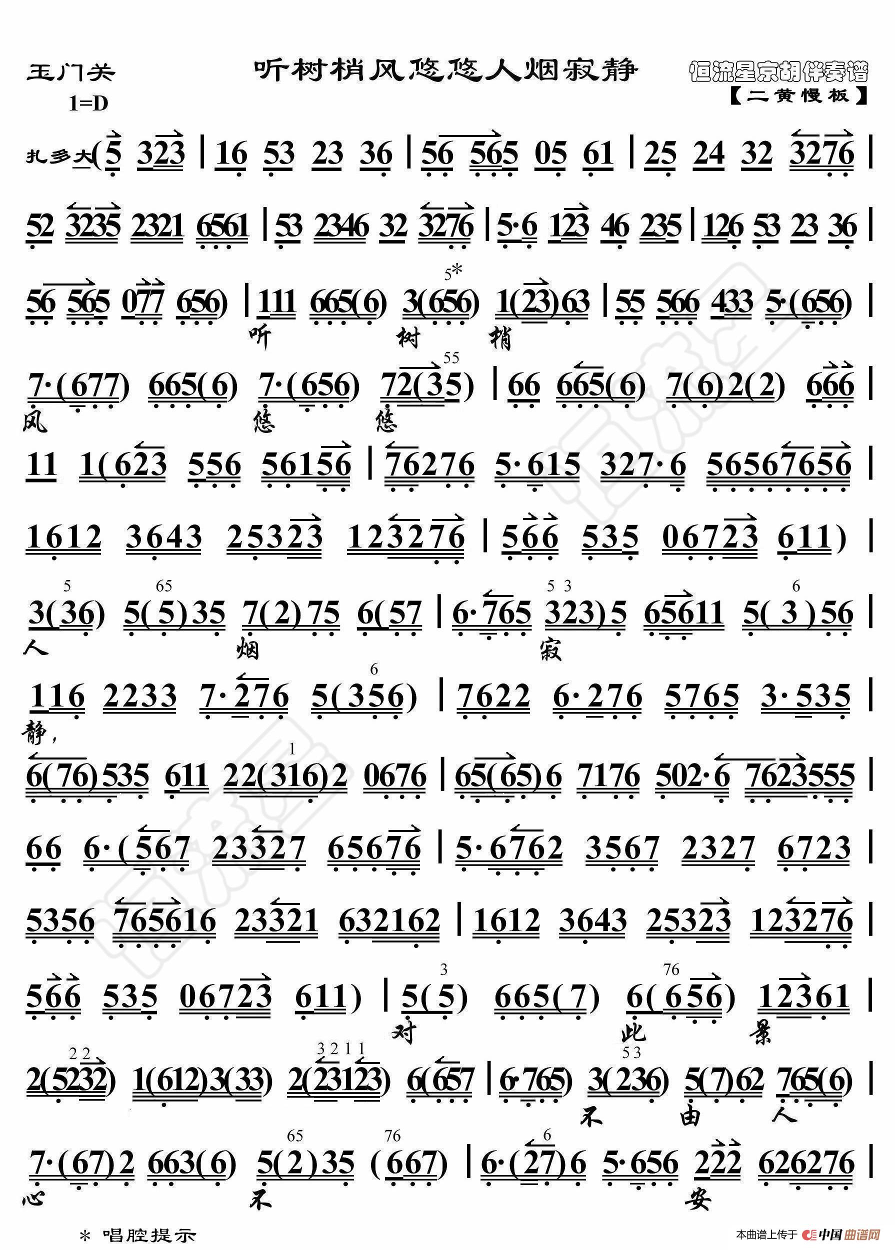 玉门关·听树梢风悠悠人烟寂静(京胡伴奏谱)