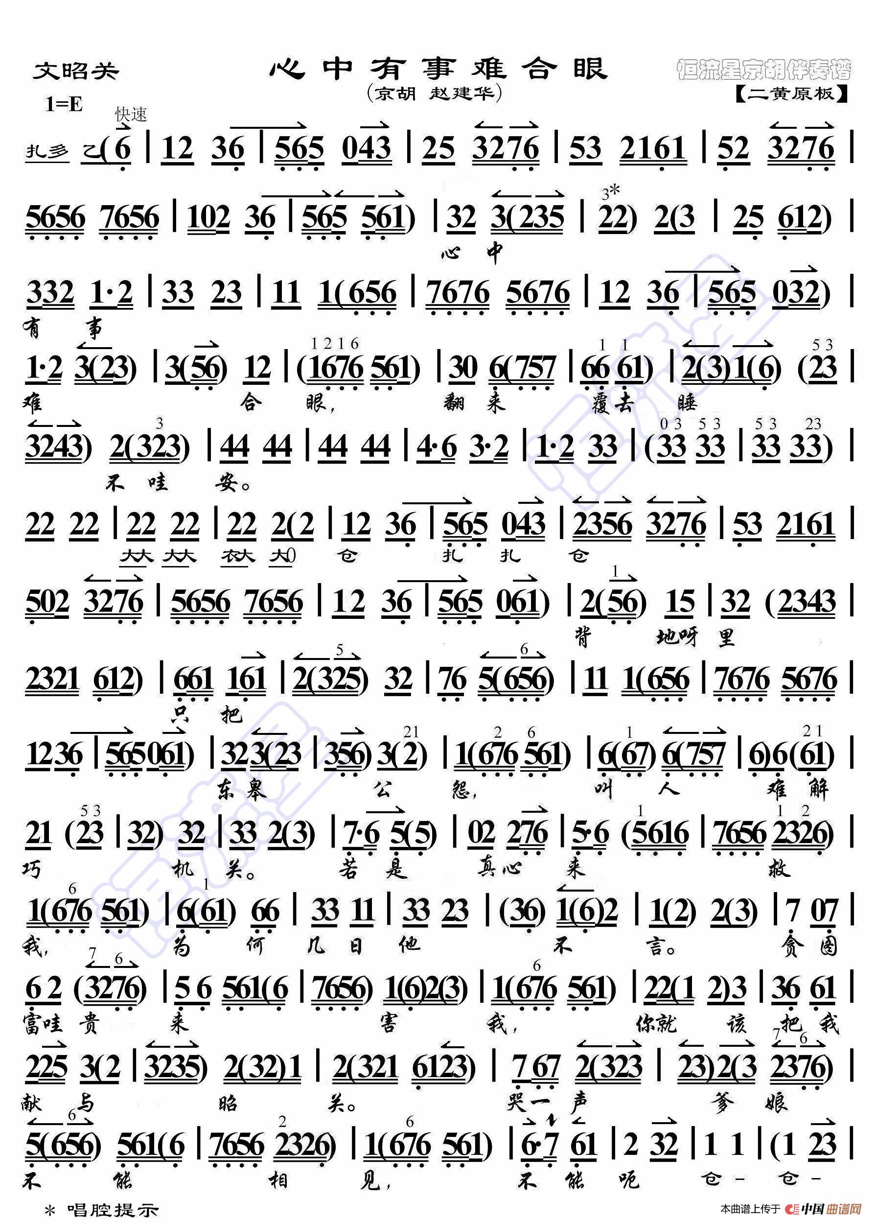 文昭关·心中有事难合眼(京胡伴奏谱)