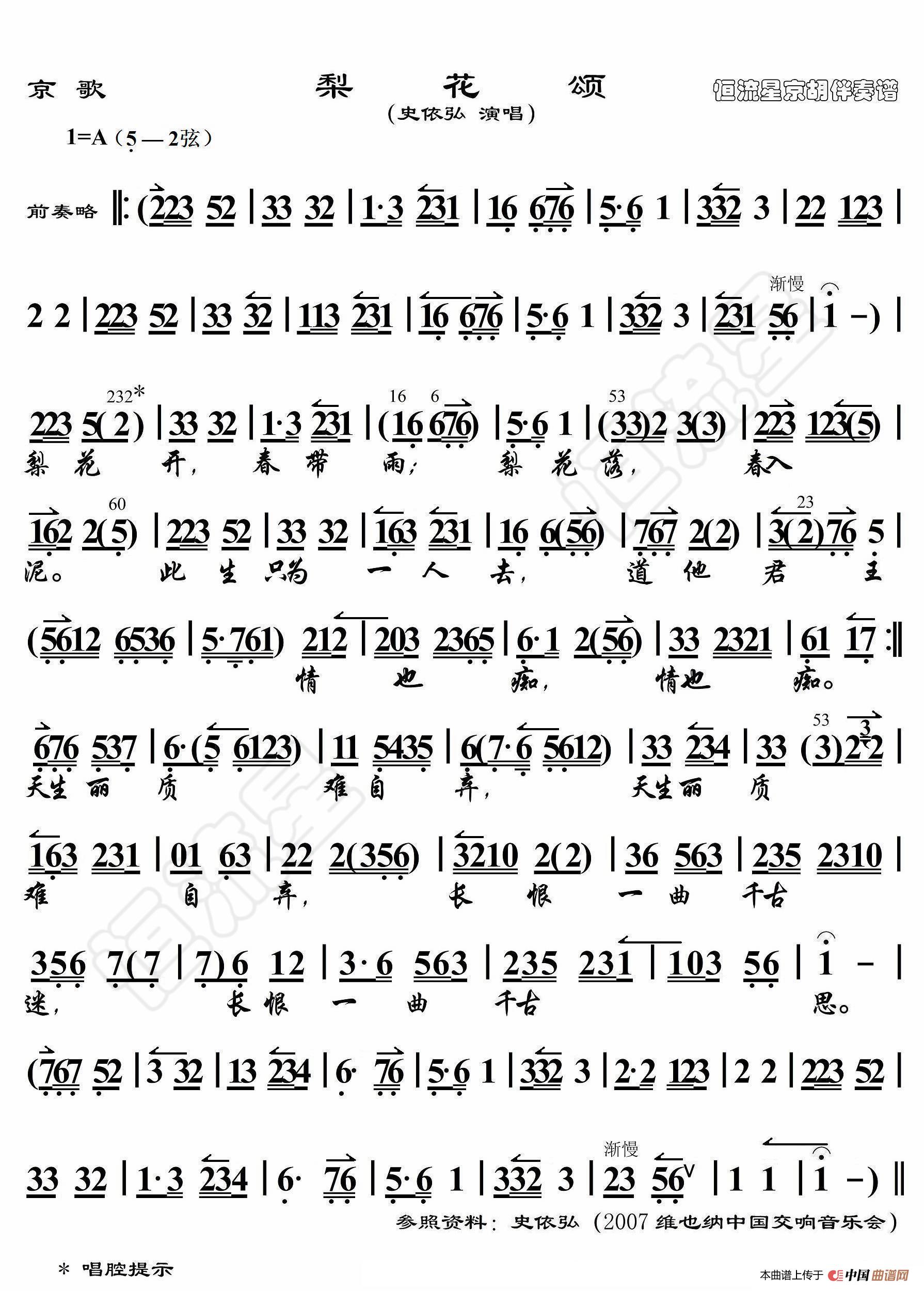 京歌·梨花颂(京胡伴奏谱)