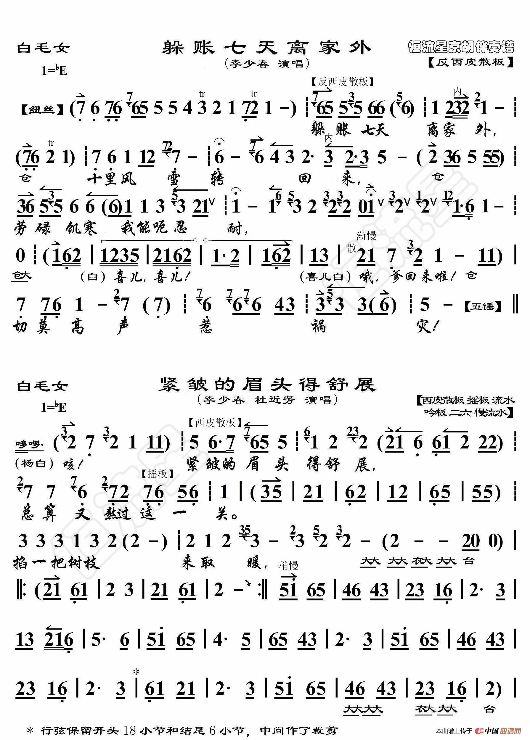 白毛女·躲账七天离家外(京胡伴奏谱)