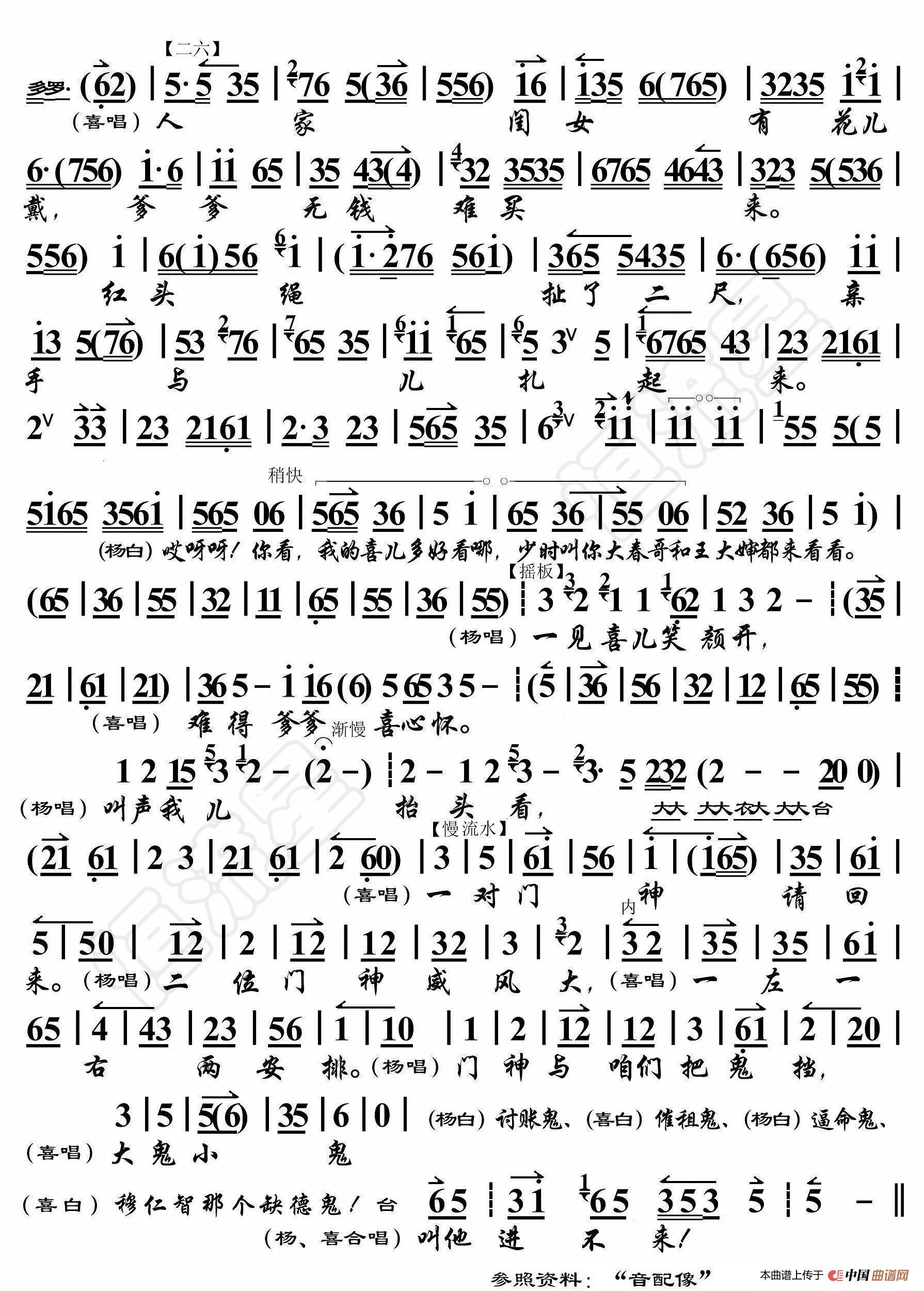 关于《白毛女·躲账七天离家外》曲谱的评论