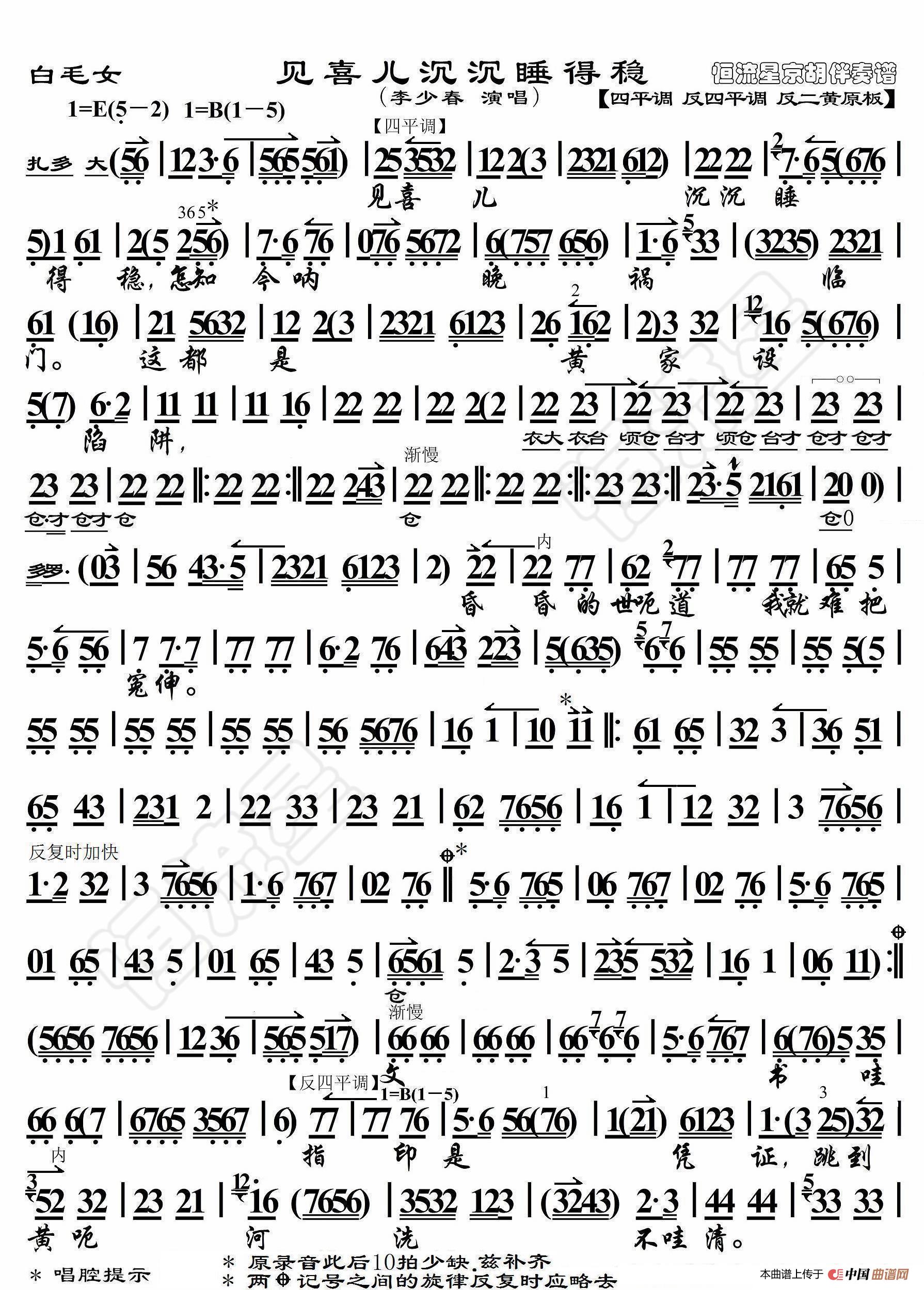 白毛女·见喜儿沉沉睡得稳(京胡伴奏谱)