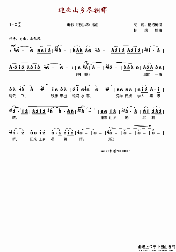 关于《迎来山乡尽朝晖》曲谱的评论