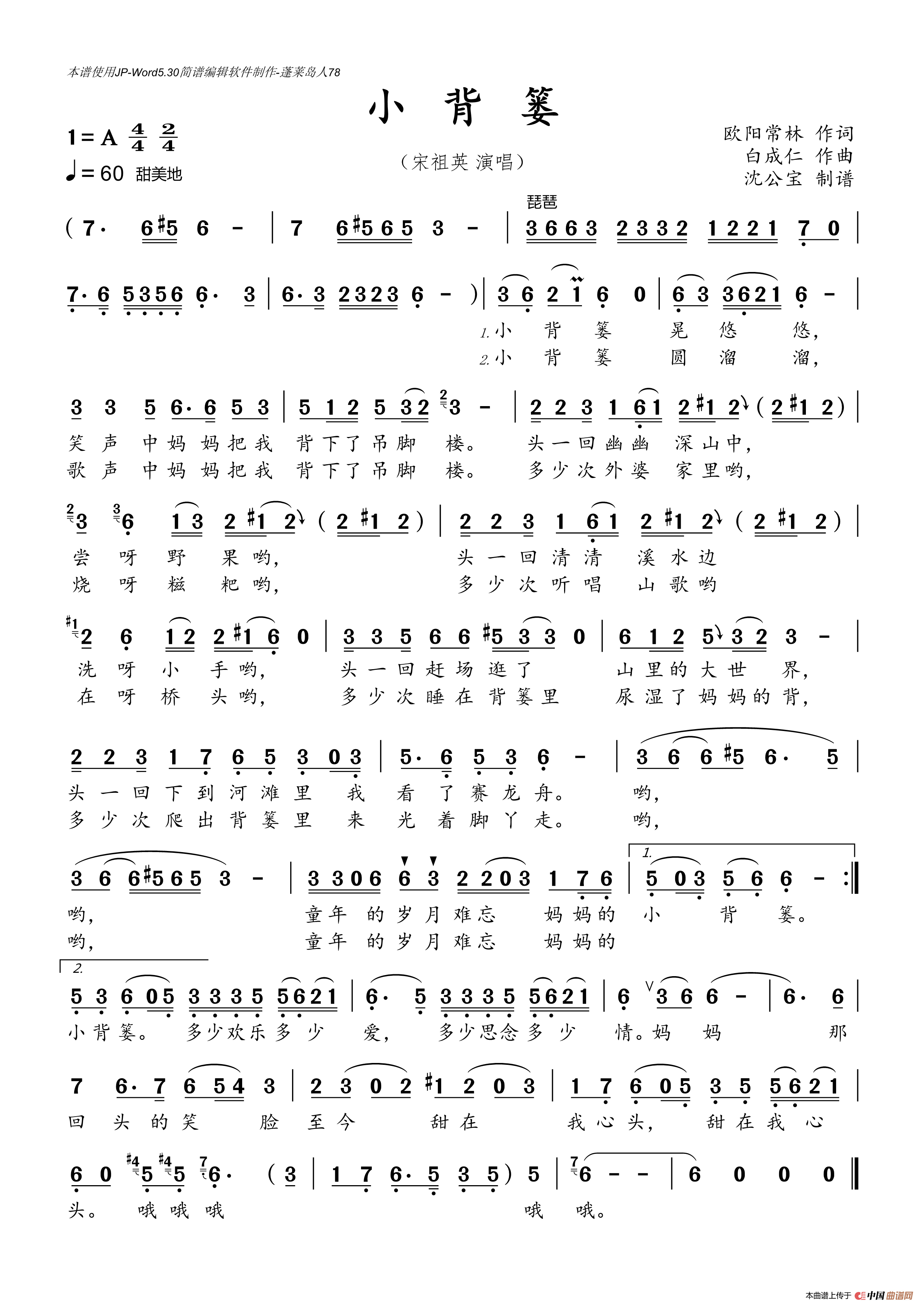 关于《小背篓》曲谱的评论