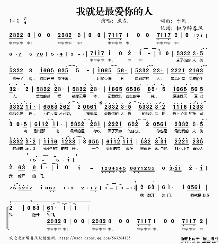 作词:于刚   作曲:于刚   演唱(奏):黑龙   格式:简谱   来源:桃李醉春风记谱   上传:桃李醉春风   日期:2011-08-20   浏览次数: