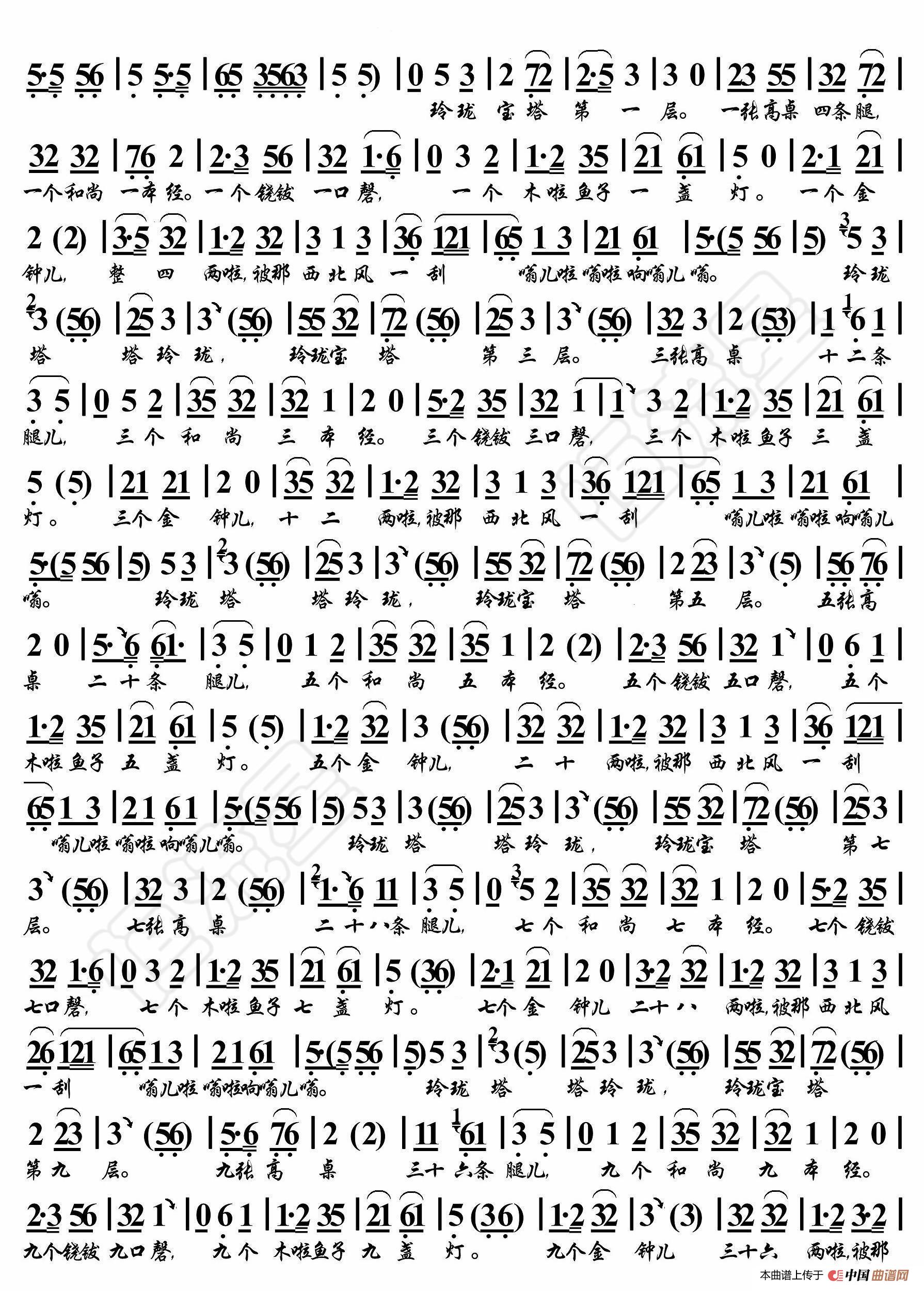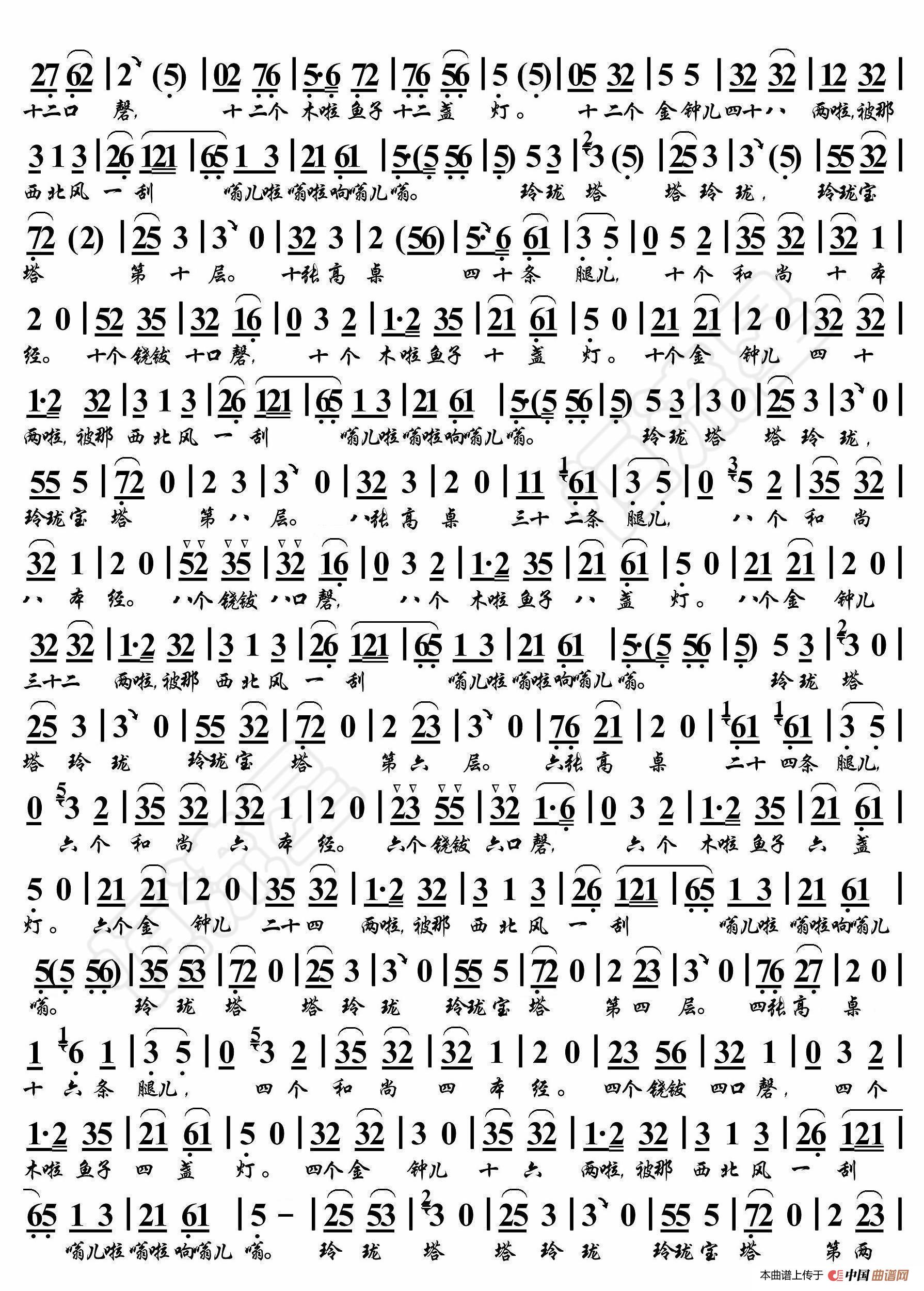 关于《西河大鼓·玲珑塔》曲谱的评论
