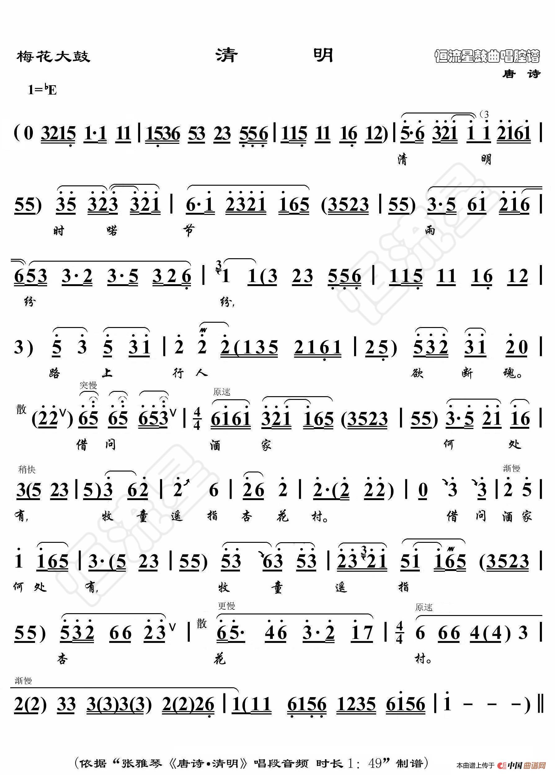 梅花大鼓·清明(鼓曲演唱谱)