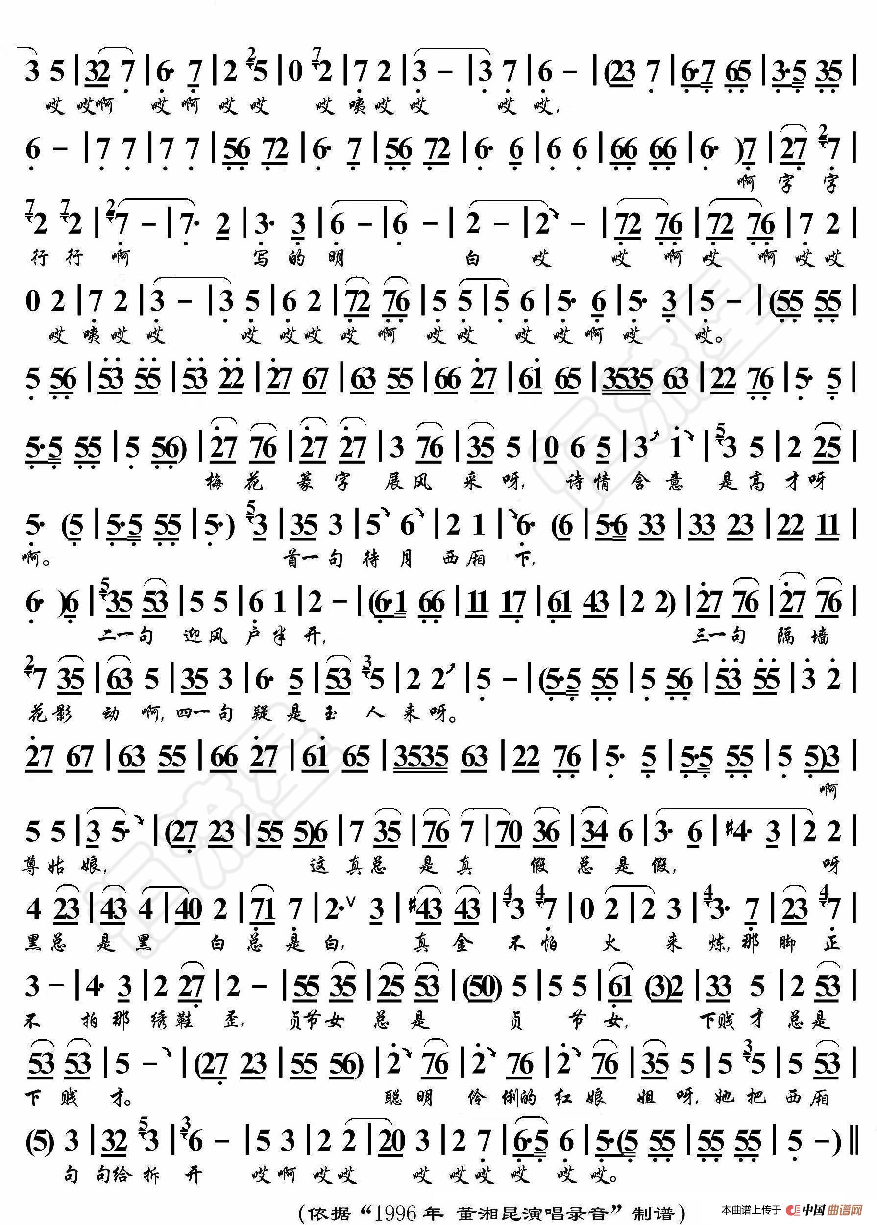 关于《京东大鼓·拆西厢》曲谱的评论
