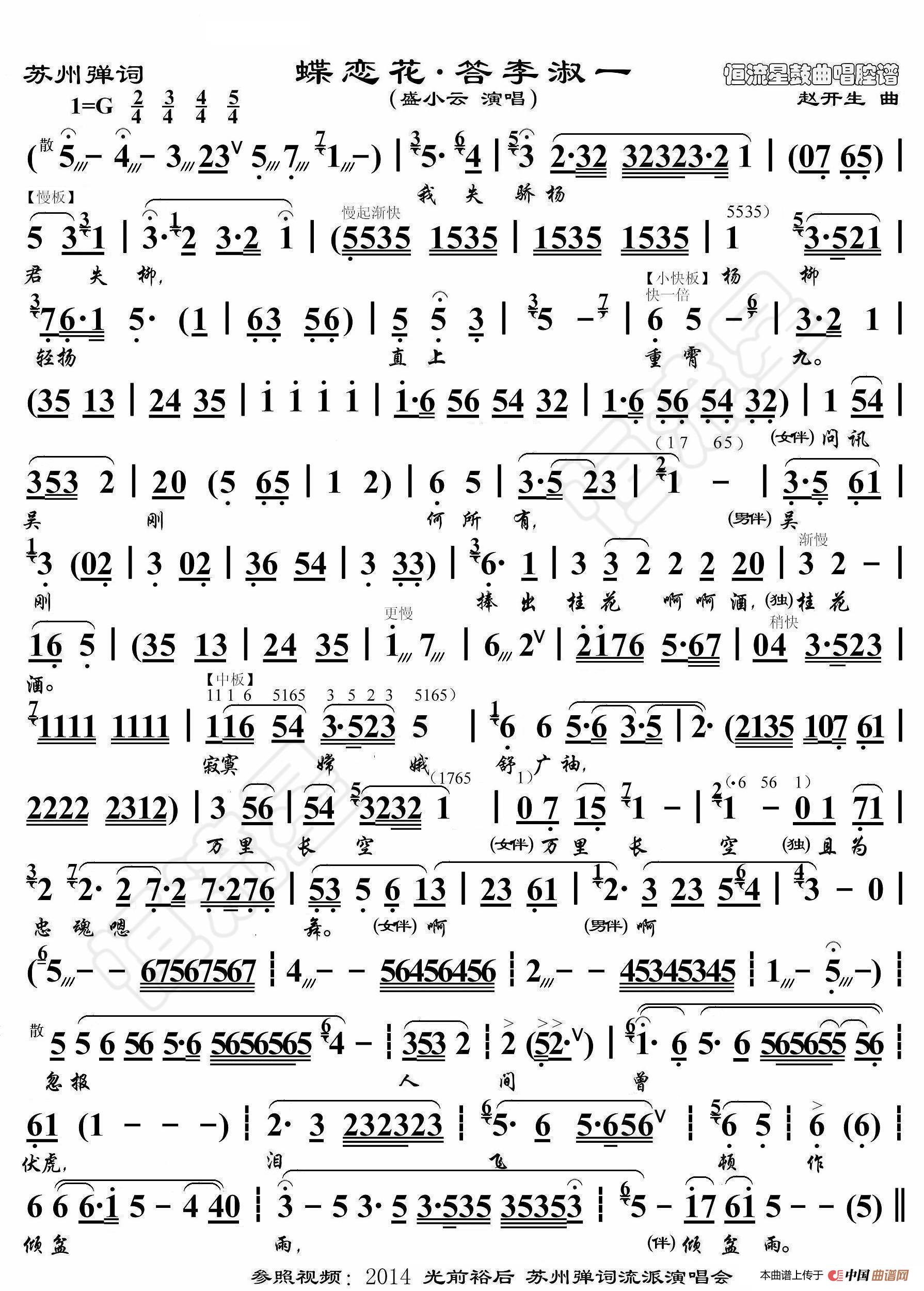 苏州弹词·蝶恋花·答李淑一(鼓曲演唱谱)
