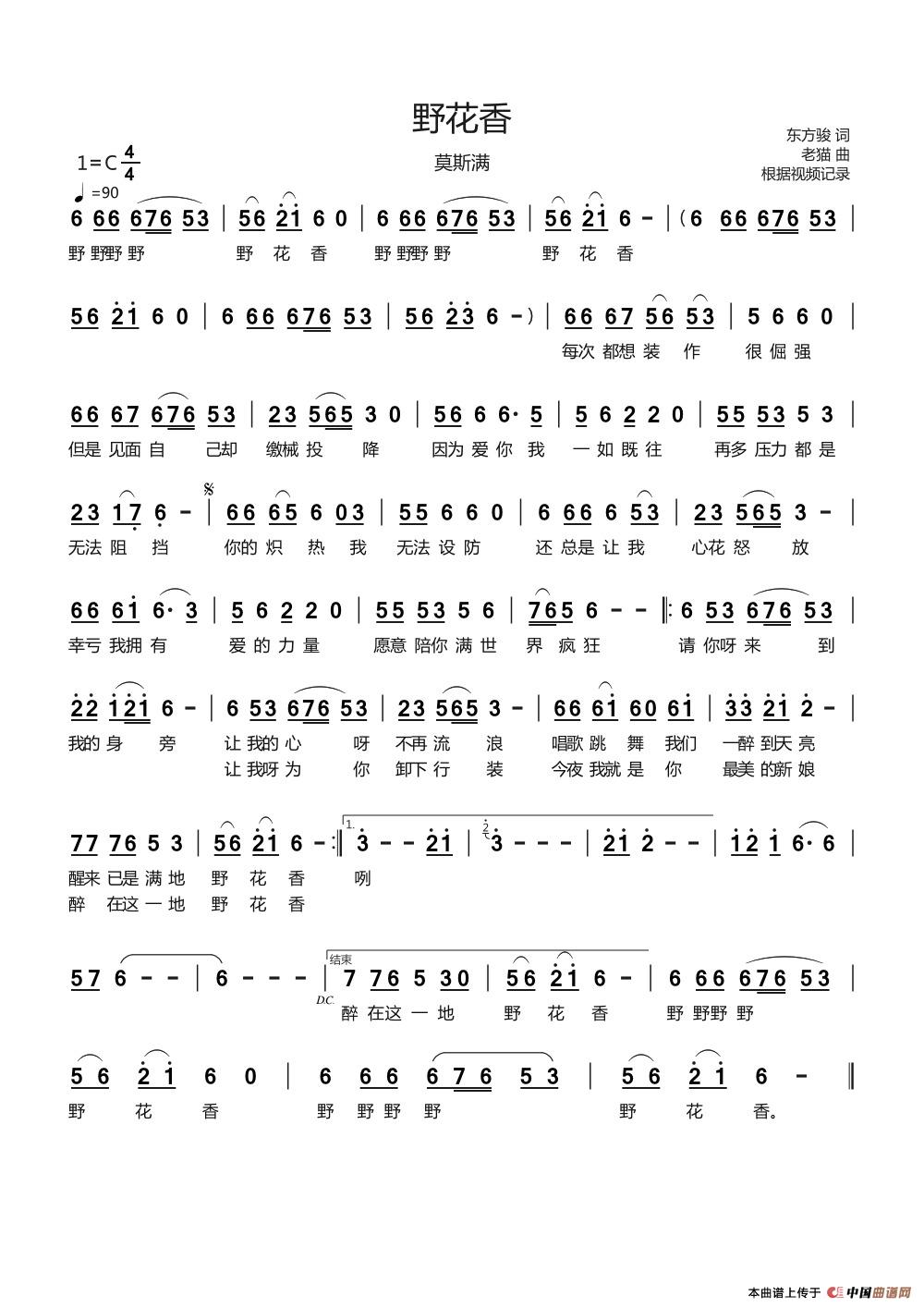 关于《野花香》曲谱的评论