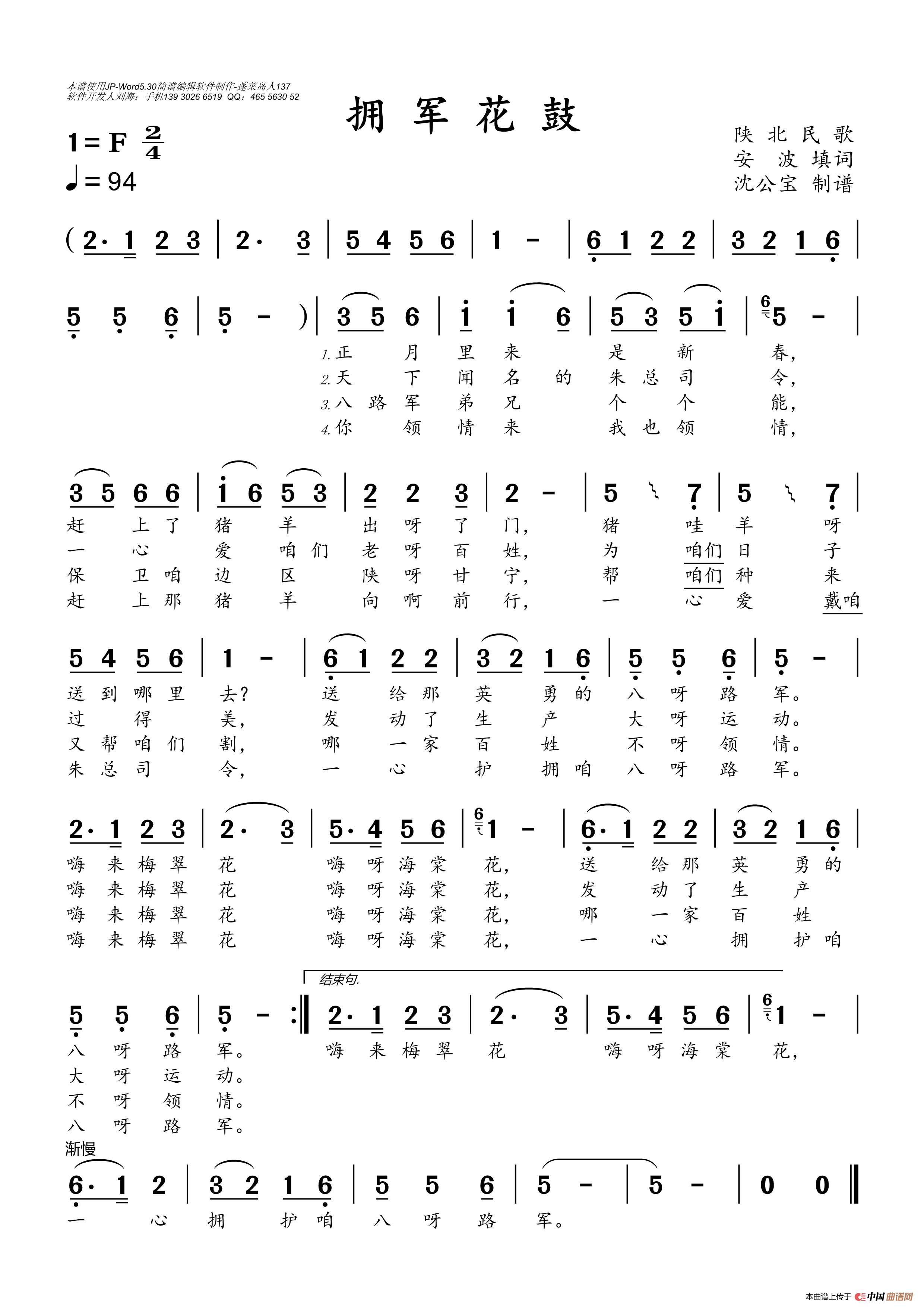 关于《拥军花鼓》曲谱的评论