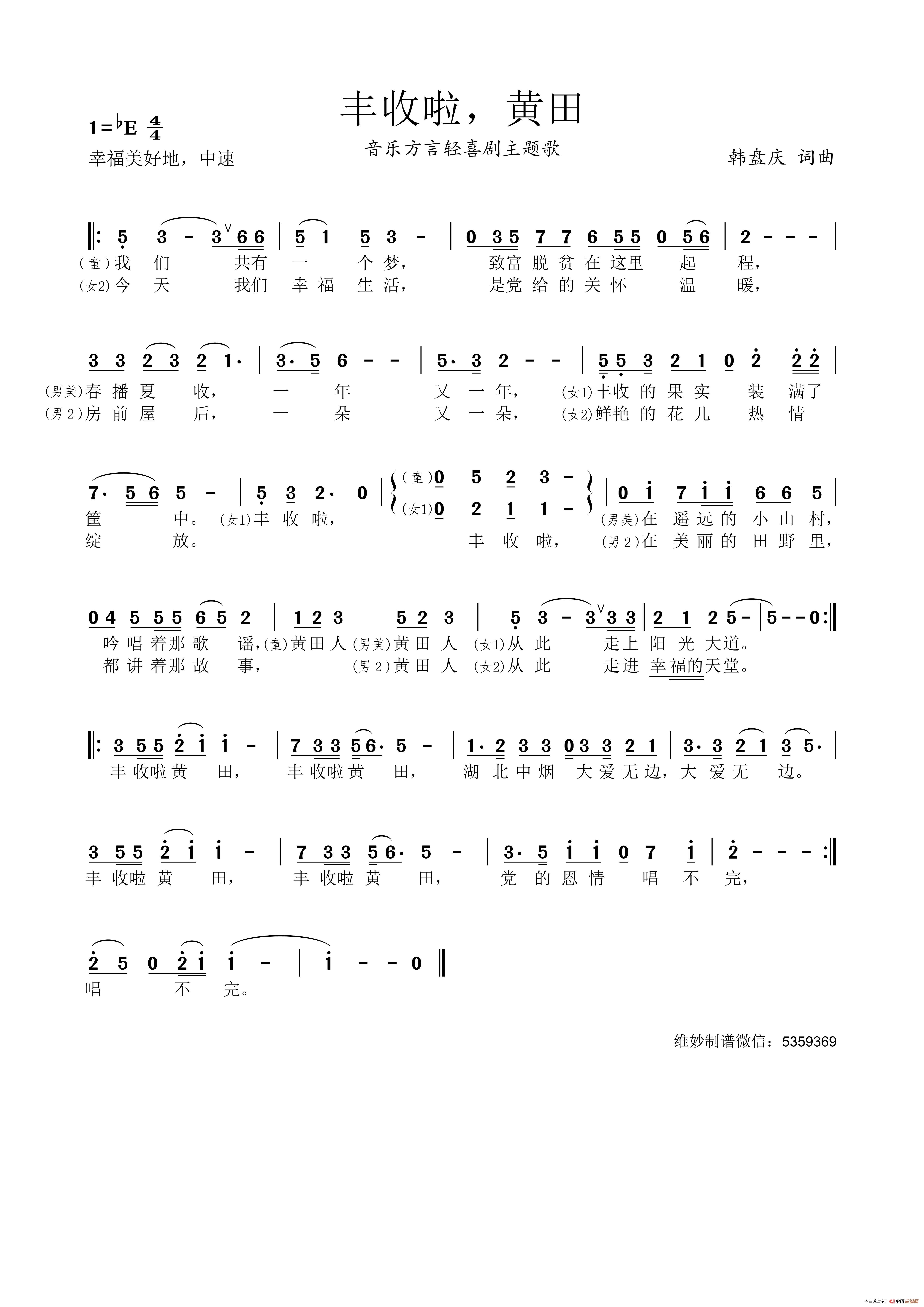 丰收啦,黄田(音乐方言轻喜剧主题歌)