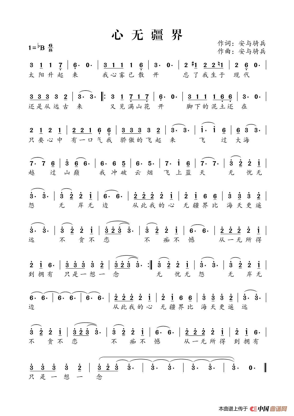关于《心无疆界》曲谱的评论