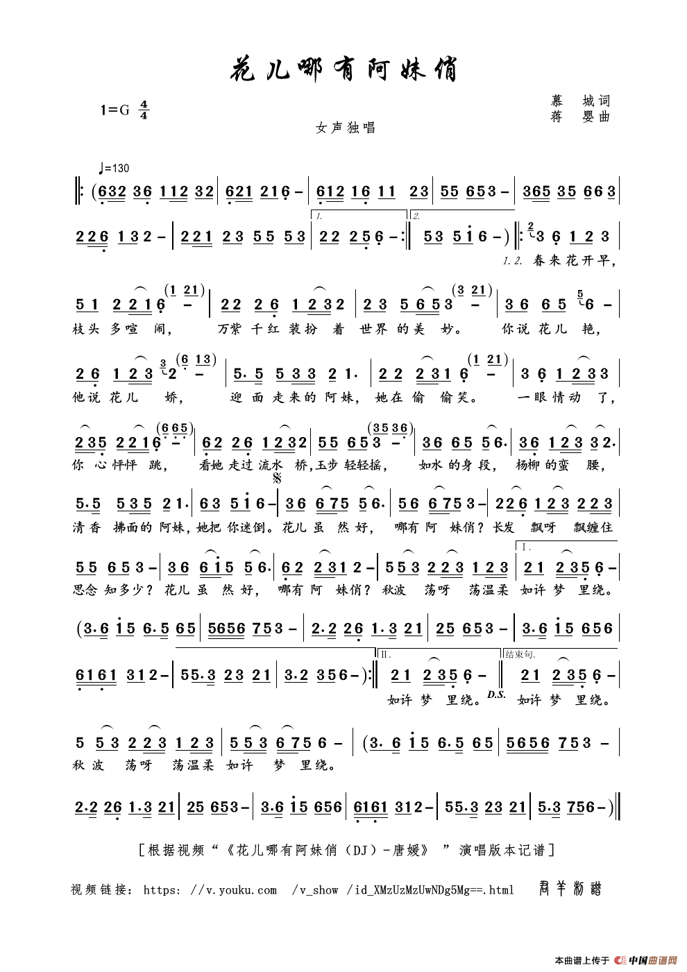 花儿哪有阿妹俏(慕城词 蒋婴曲)