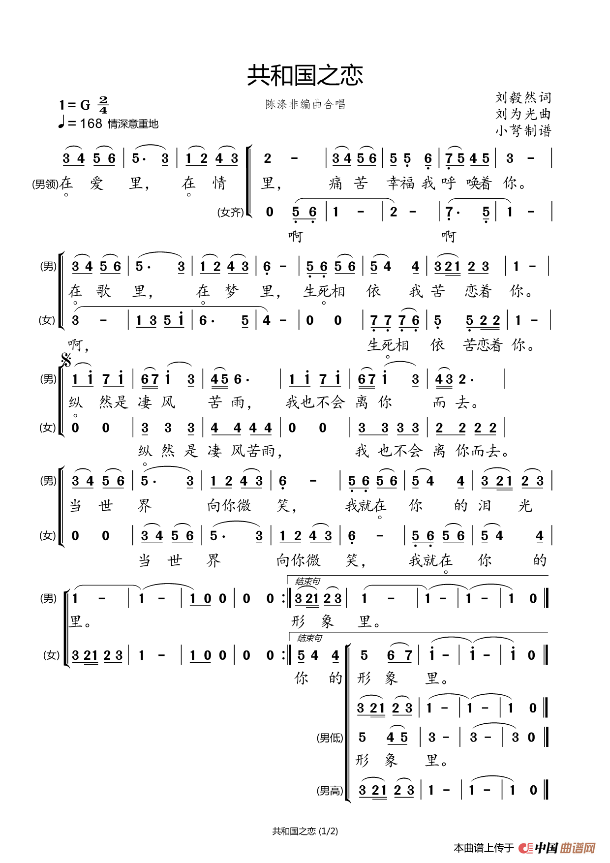 http://www.qupu123.com/album/845/《共和国之恋》文本歌词