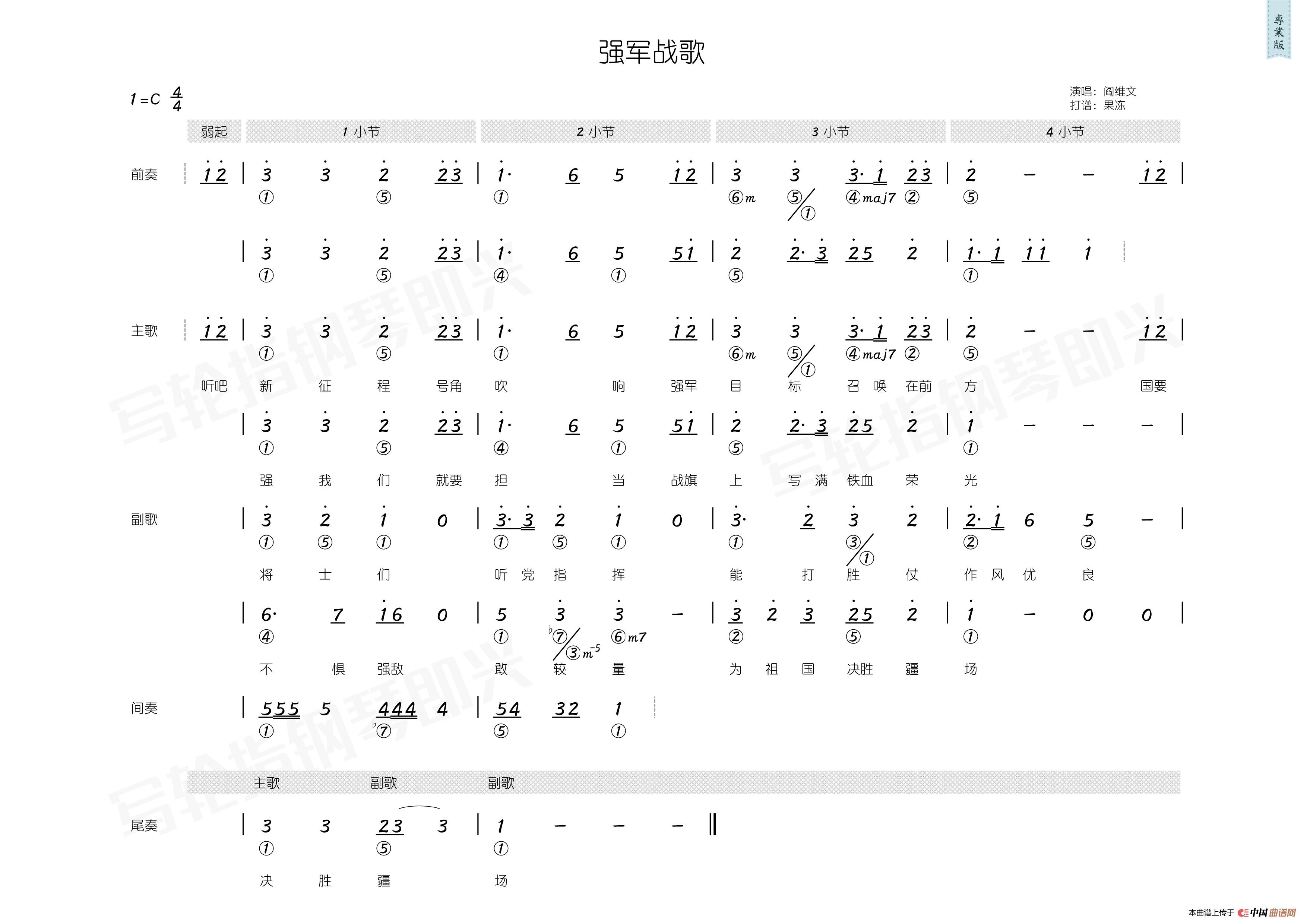 强军战歌(简和谱)(1)_原文件名:Q强军战歌-阎维文(专业版).jpg强军战歌(简和谱)(1)_原文件名:Q强军战歌-阎维文(弹唱版).jpg