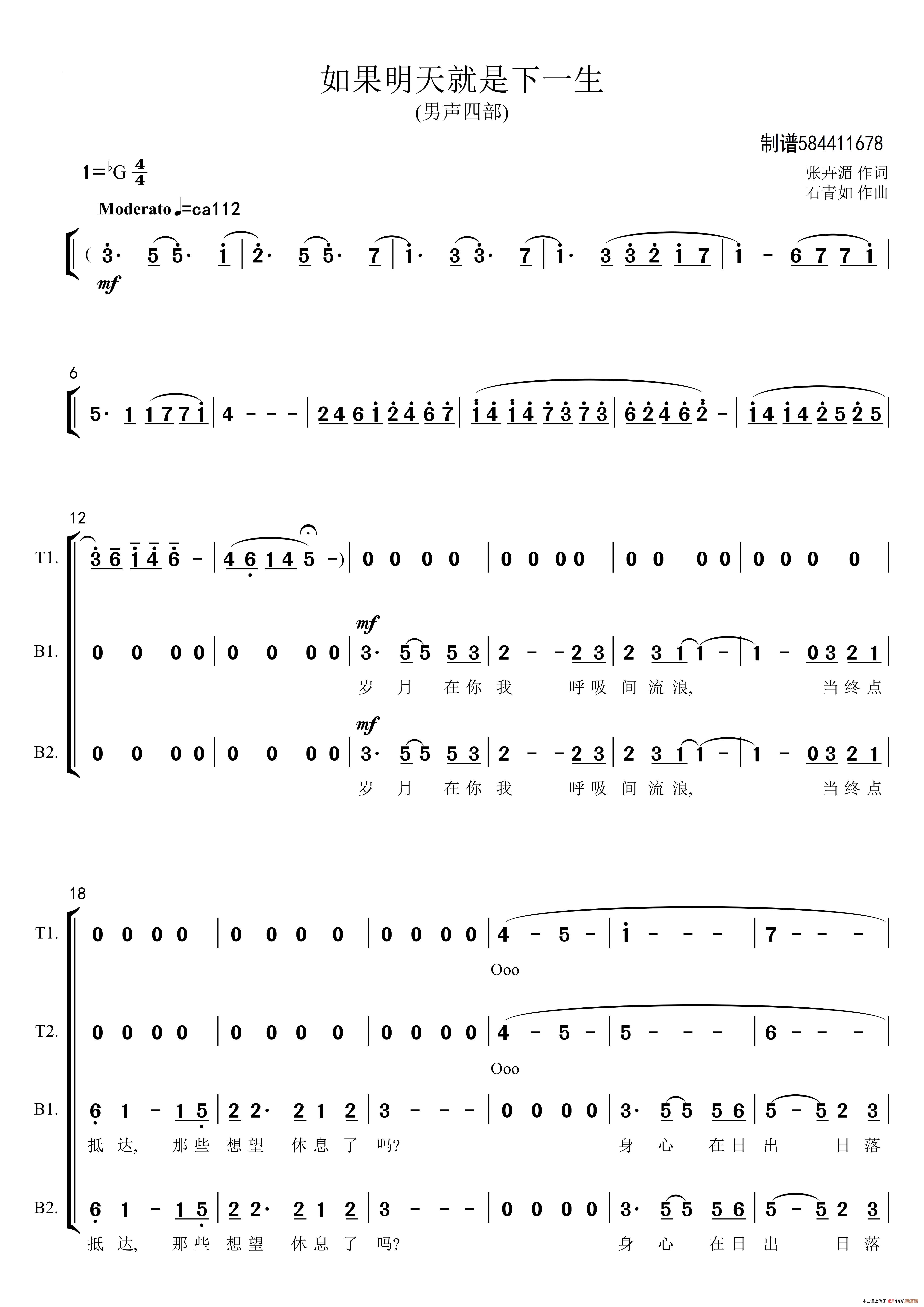 如果明天就是下一生合唱简谱(男声四部)