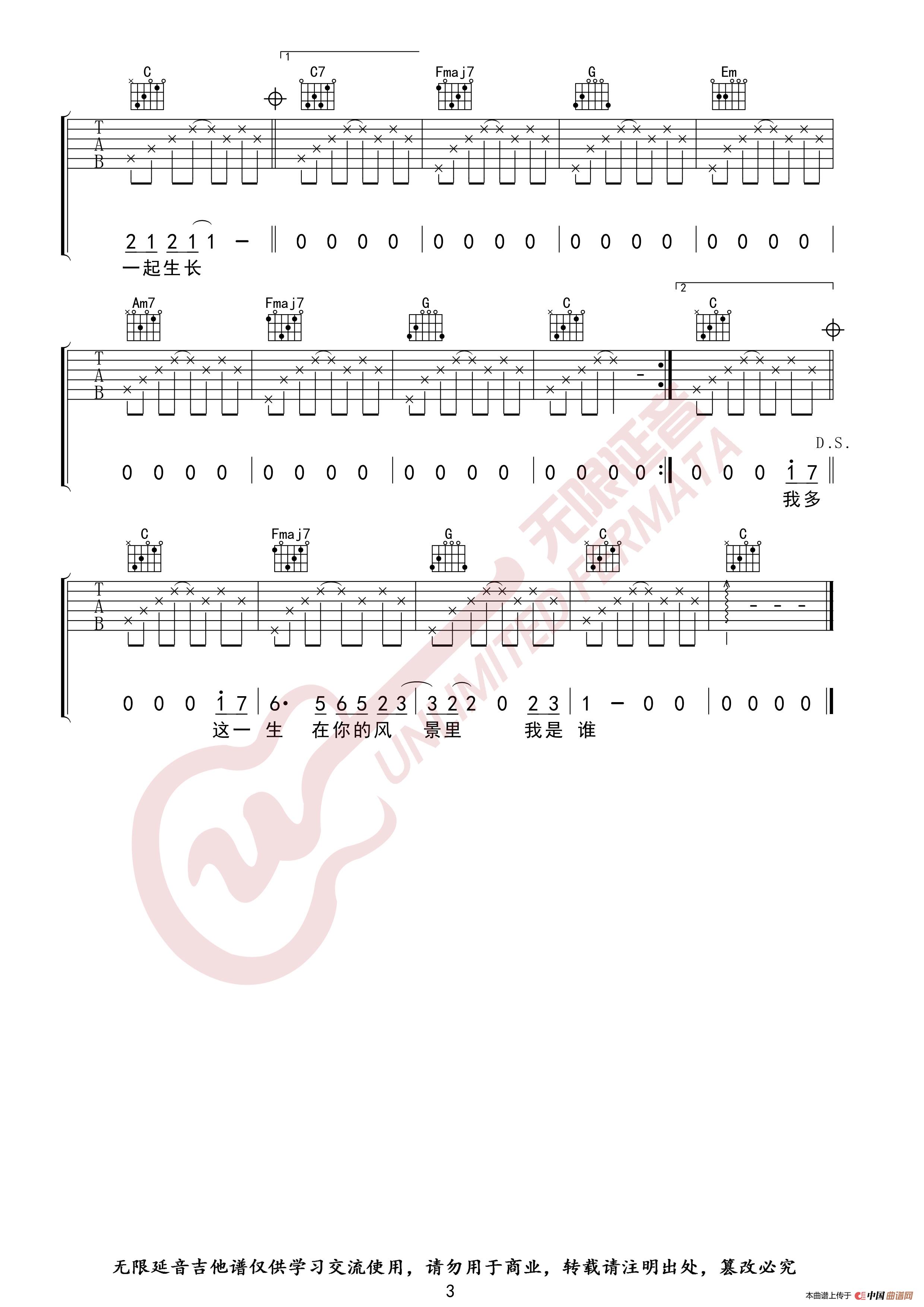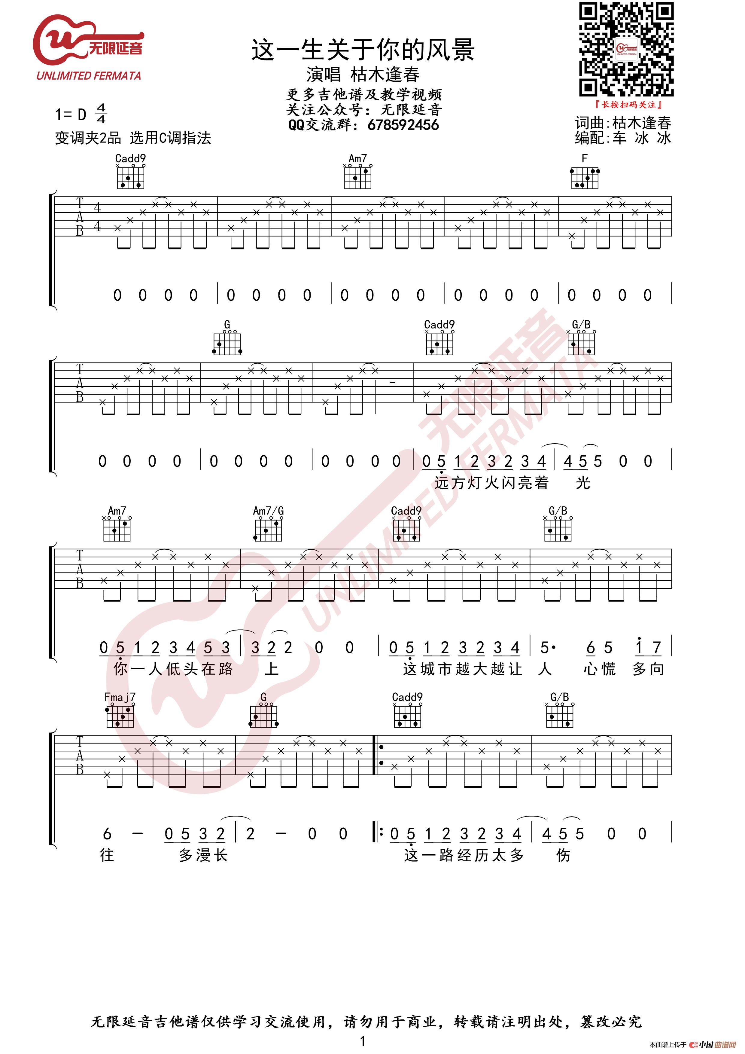 枯木逢春 这一生关于你的风景 吉他谱(无限延音编配)