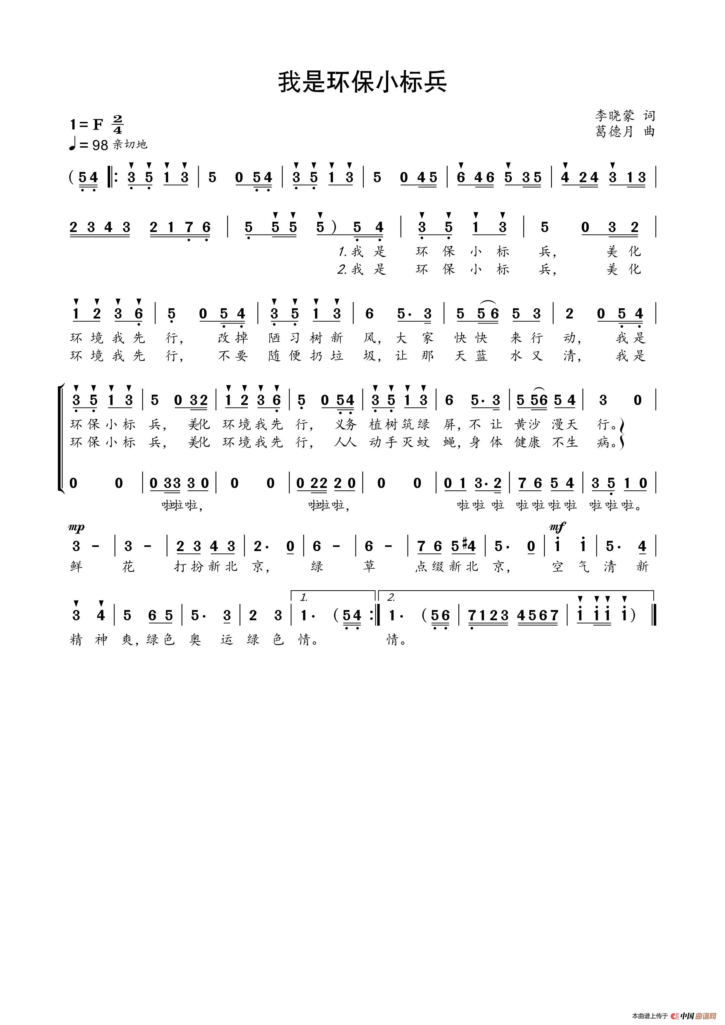 提示:在曲谱图片上单击右键,选择"图片另存为..."即可将曲谱保存到您的电脑中,打印时候可将图片插入到WORD中,调整合适大小打印即可。