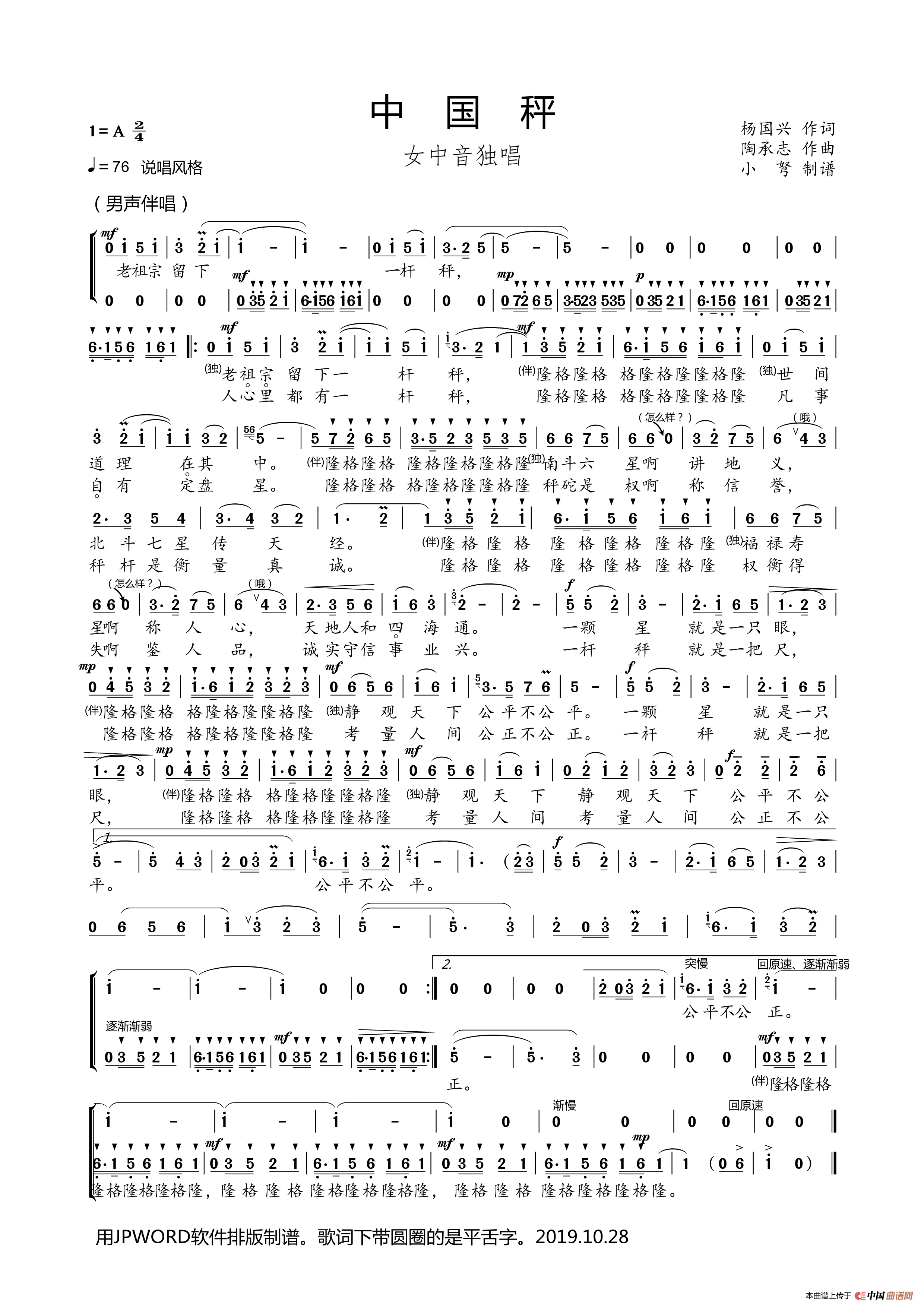 《中国秤》文本歌词