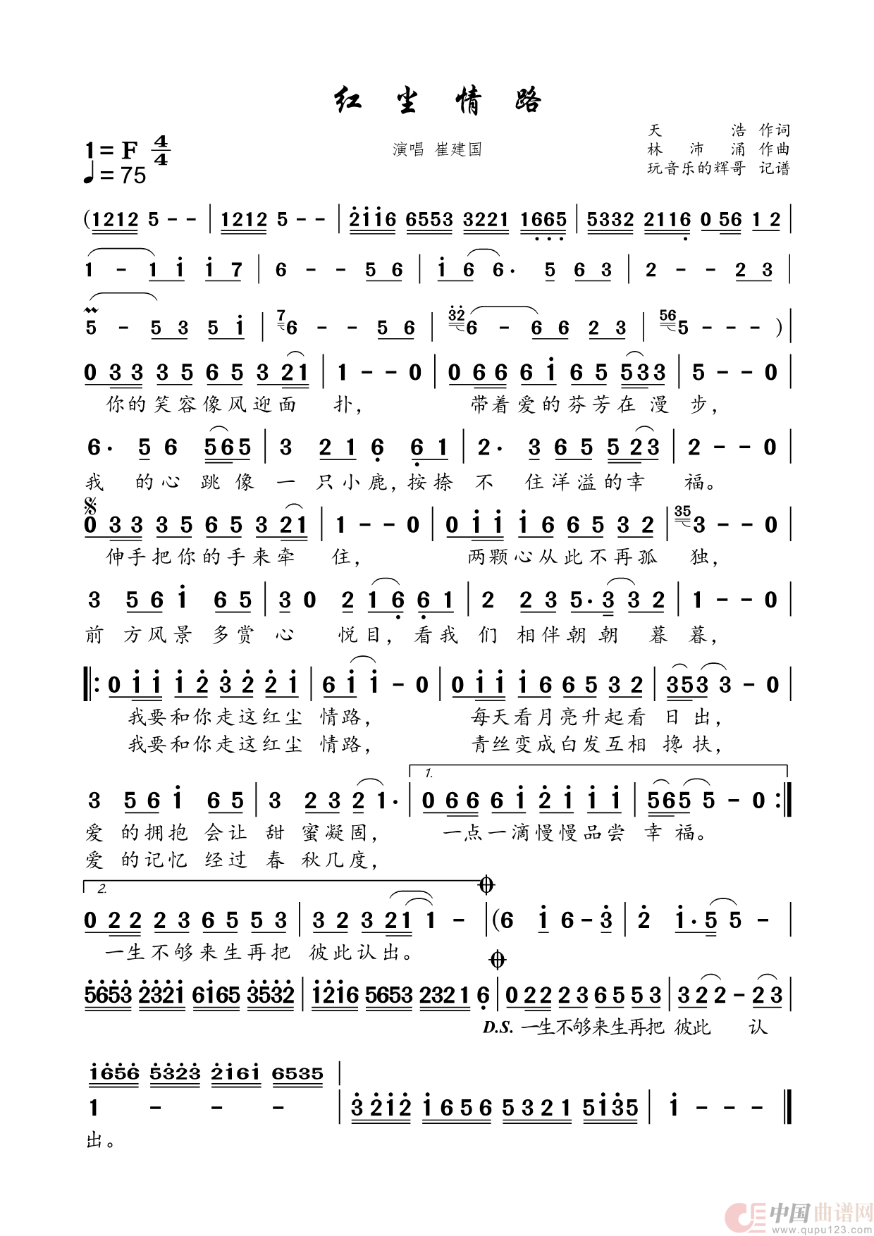《红尘情路》筒谱,我很喜欢!谢谢老师们!! [回复]