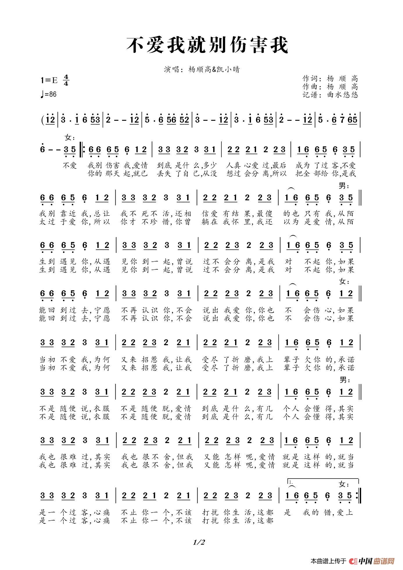 作词:扬顺高 作曲:扬顺高 演唱(奏):扬顺高、凯小晴 来源:谱友曲水悠悠上传 上传:曲水悠悠
