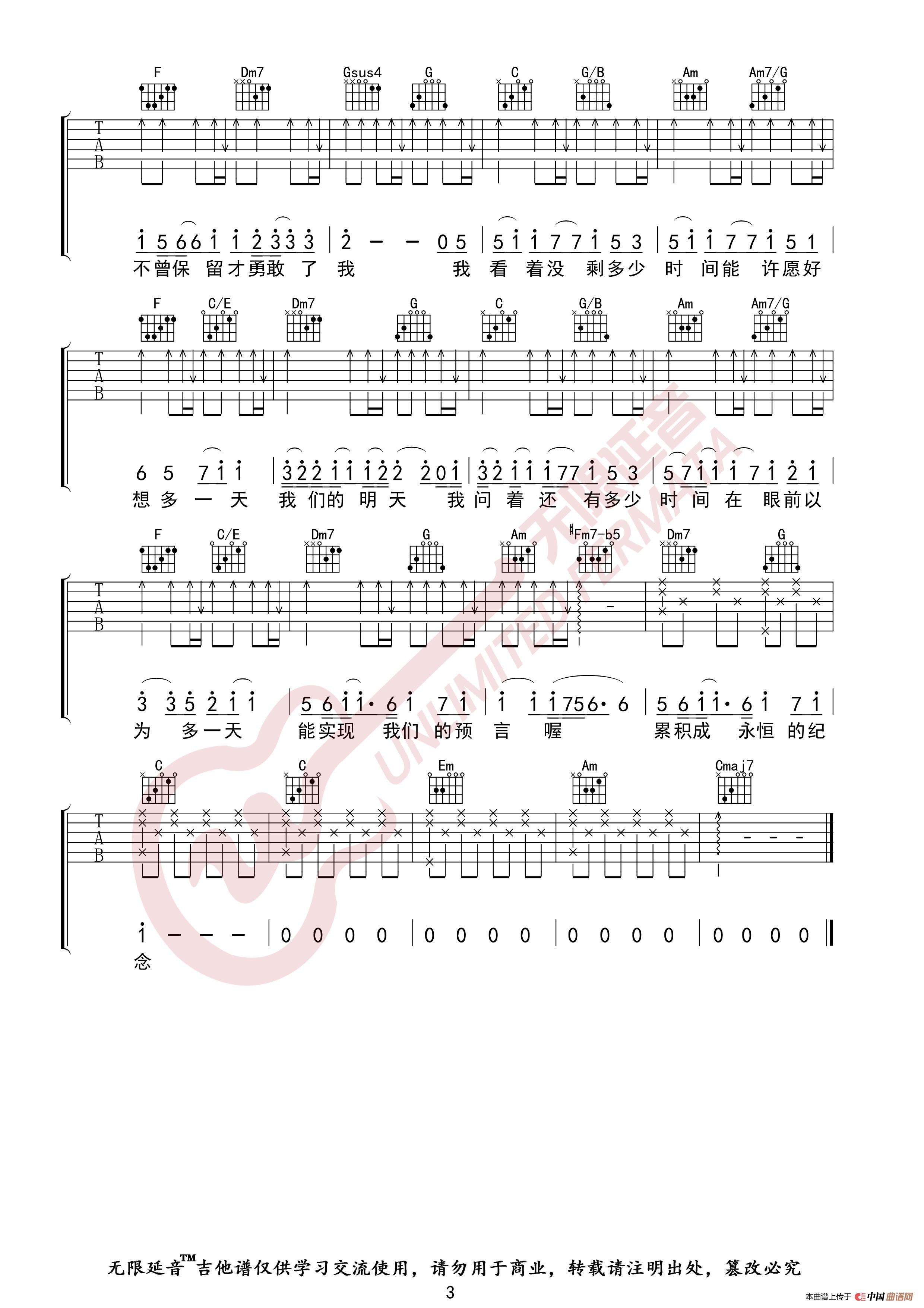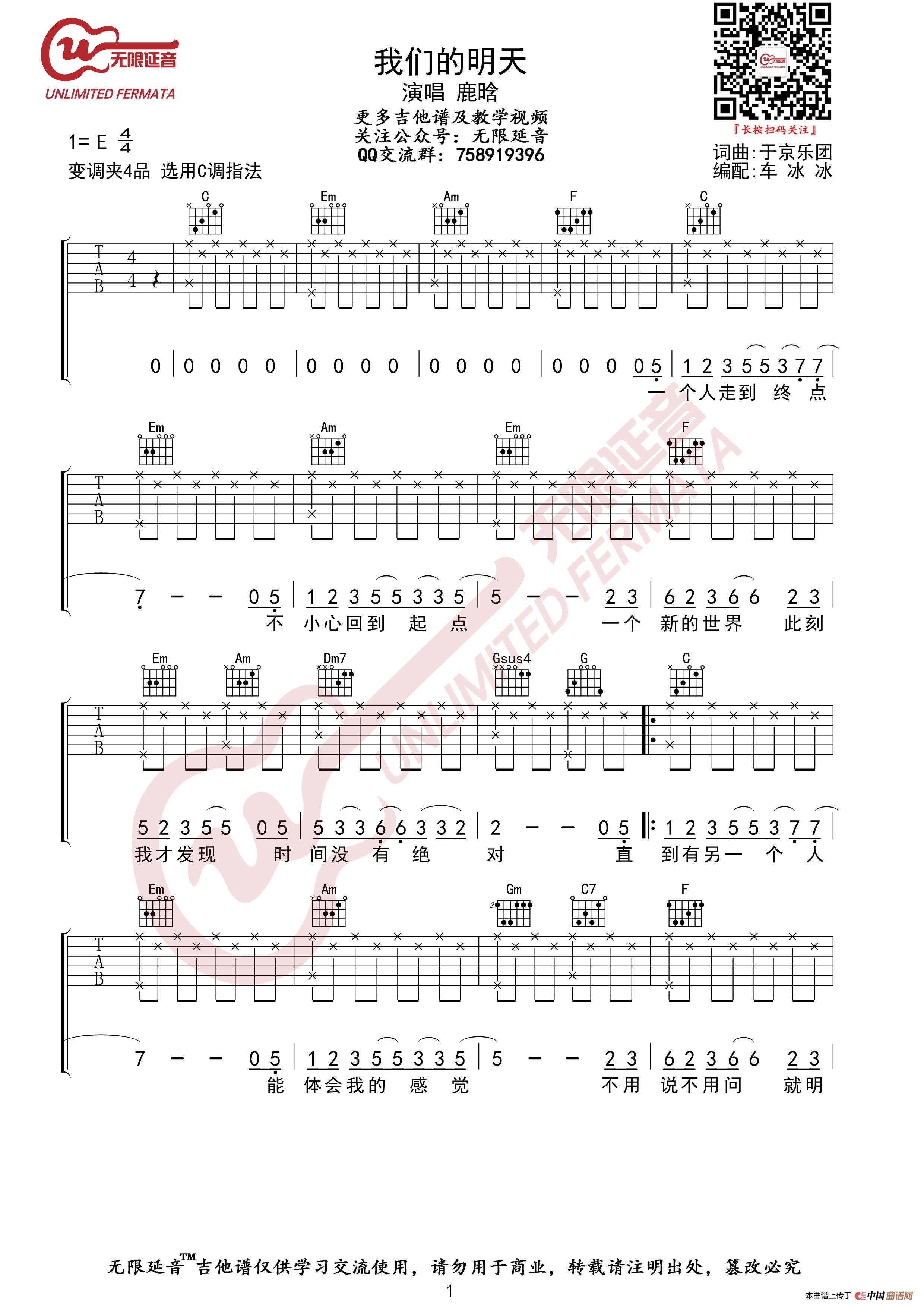 鹿晗 我们的明天 吉他谱(无限延音编配)