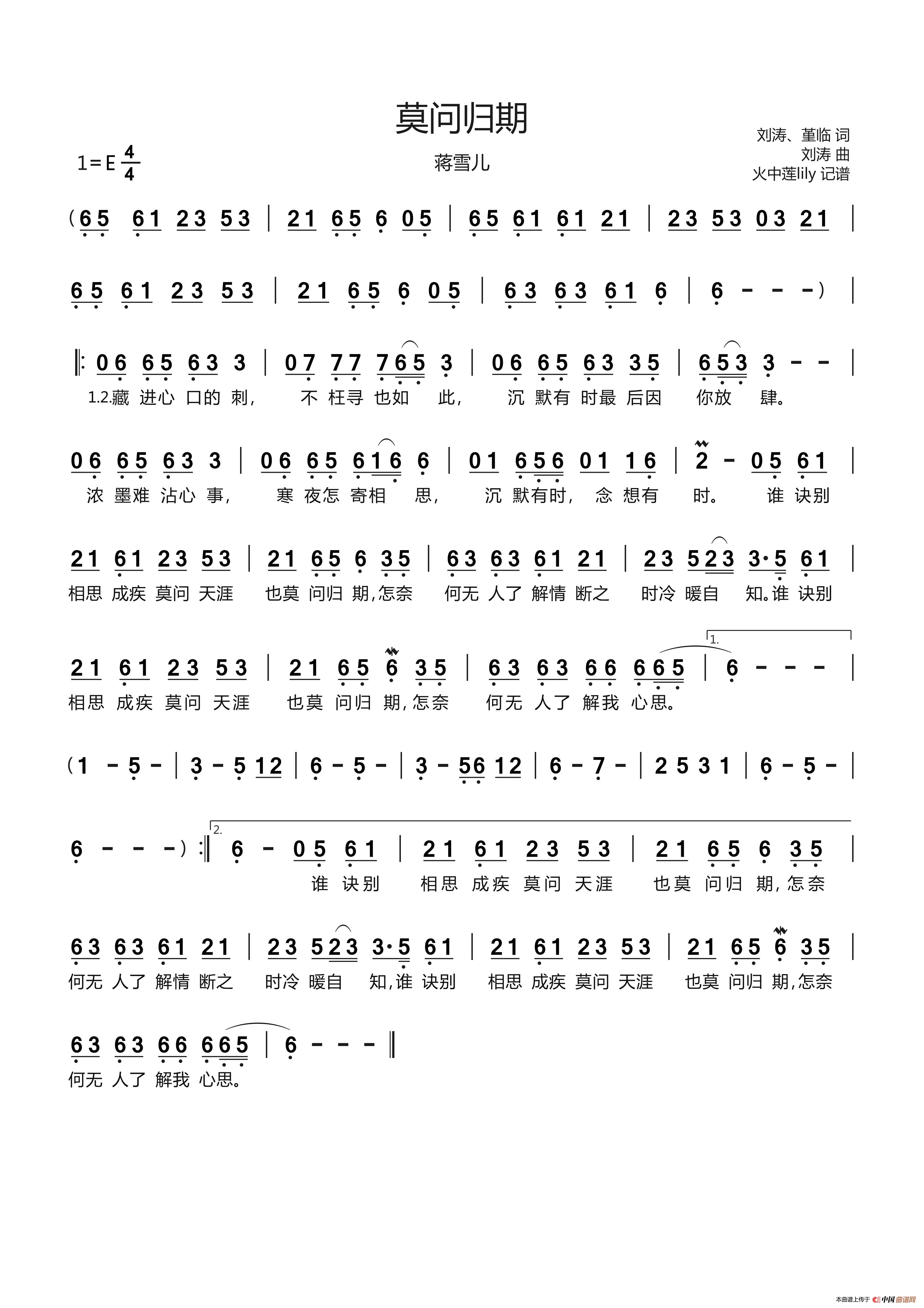 关于《莫问归期》曲谱的评论