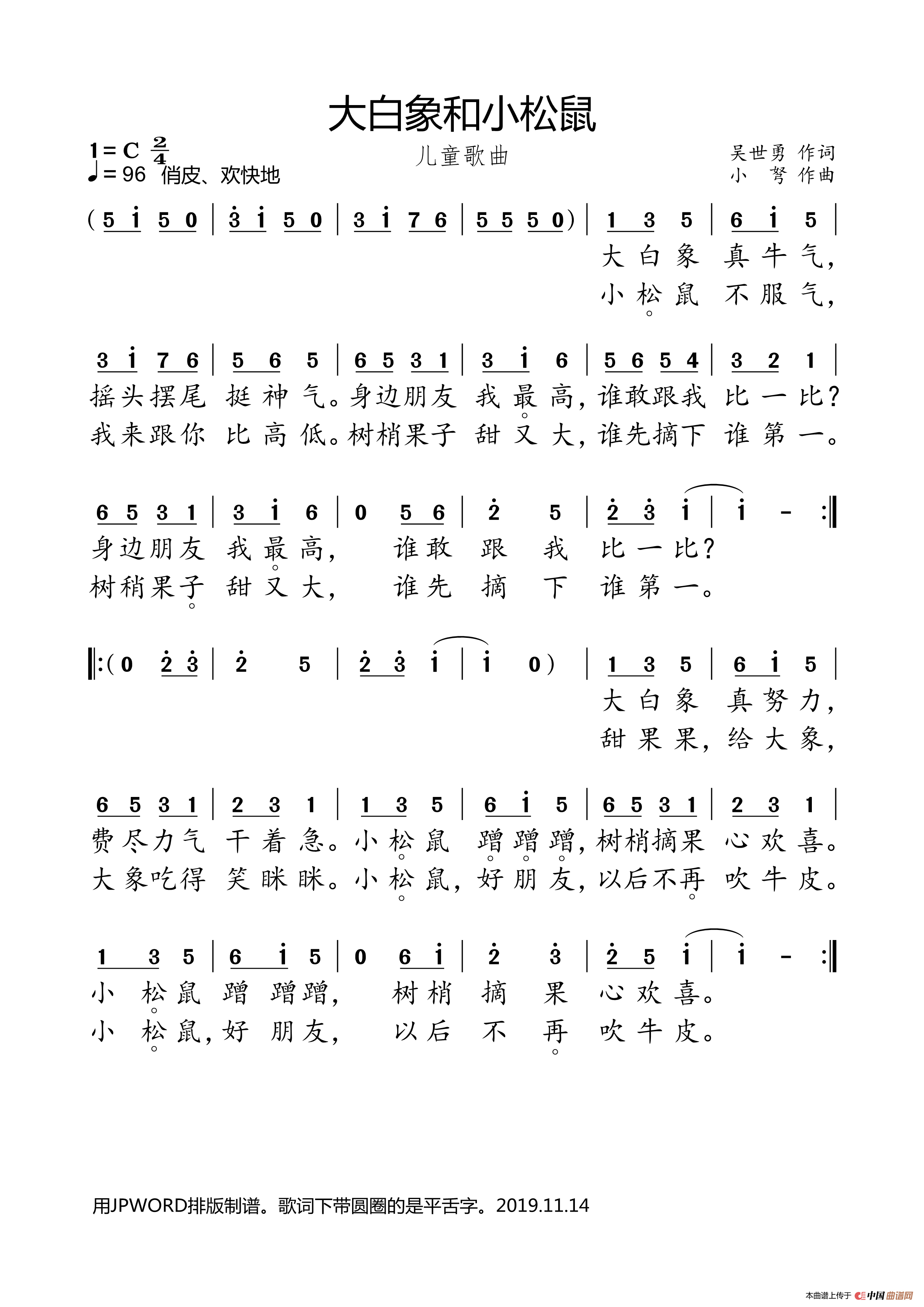 《大白象和小松鼠》文本歌词