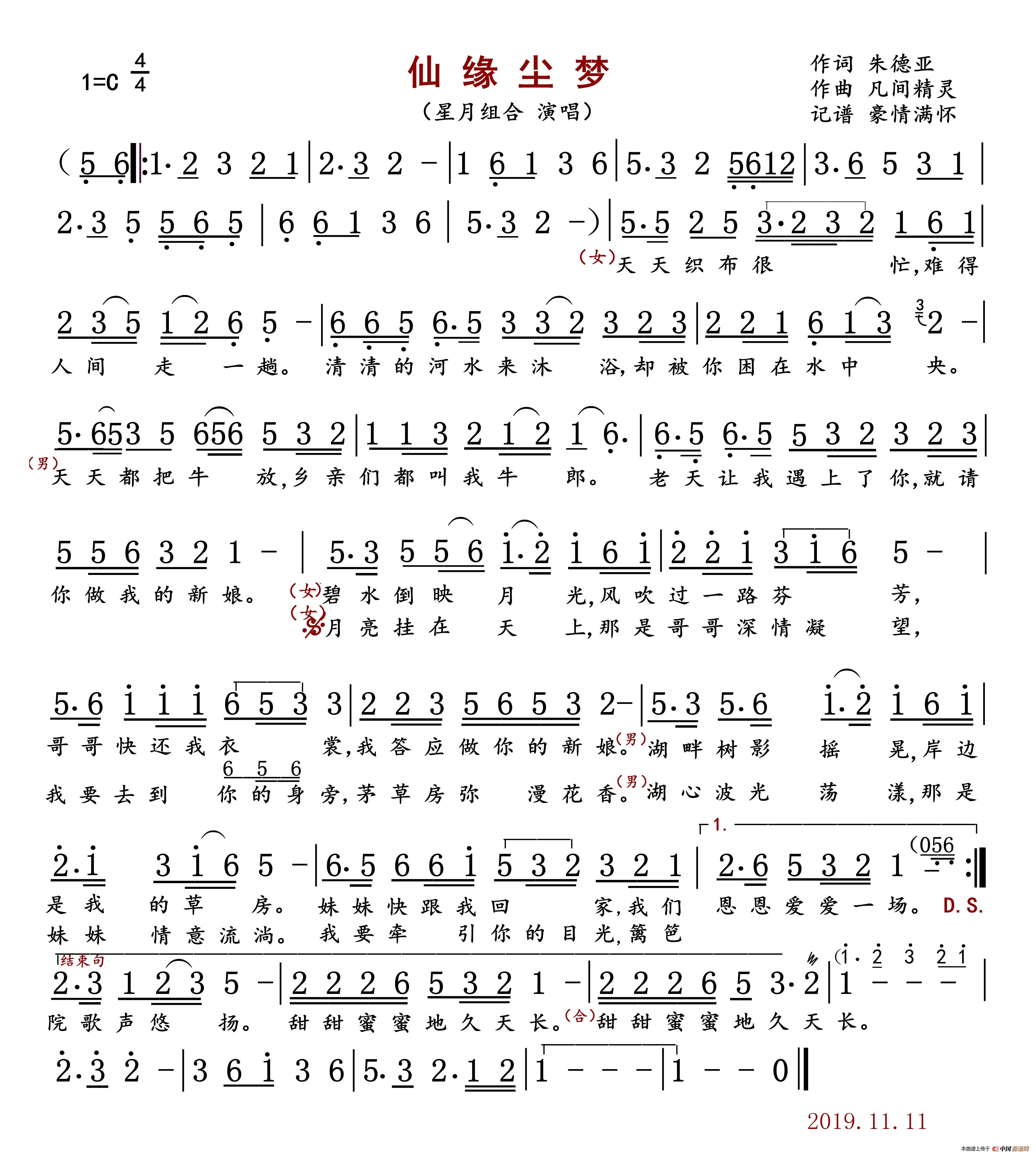 作词:朱德亚   作曲:凡间精灵   演唱(奏):星月组合   来源:根据同名原唱记谱   上传:豪情满怀@   日期:2019-11-14   浏览次数: