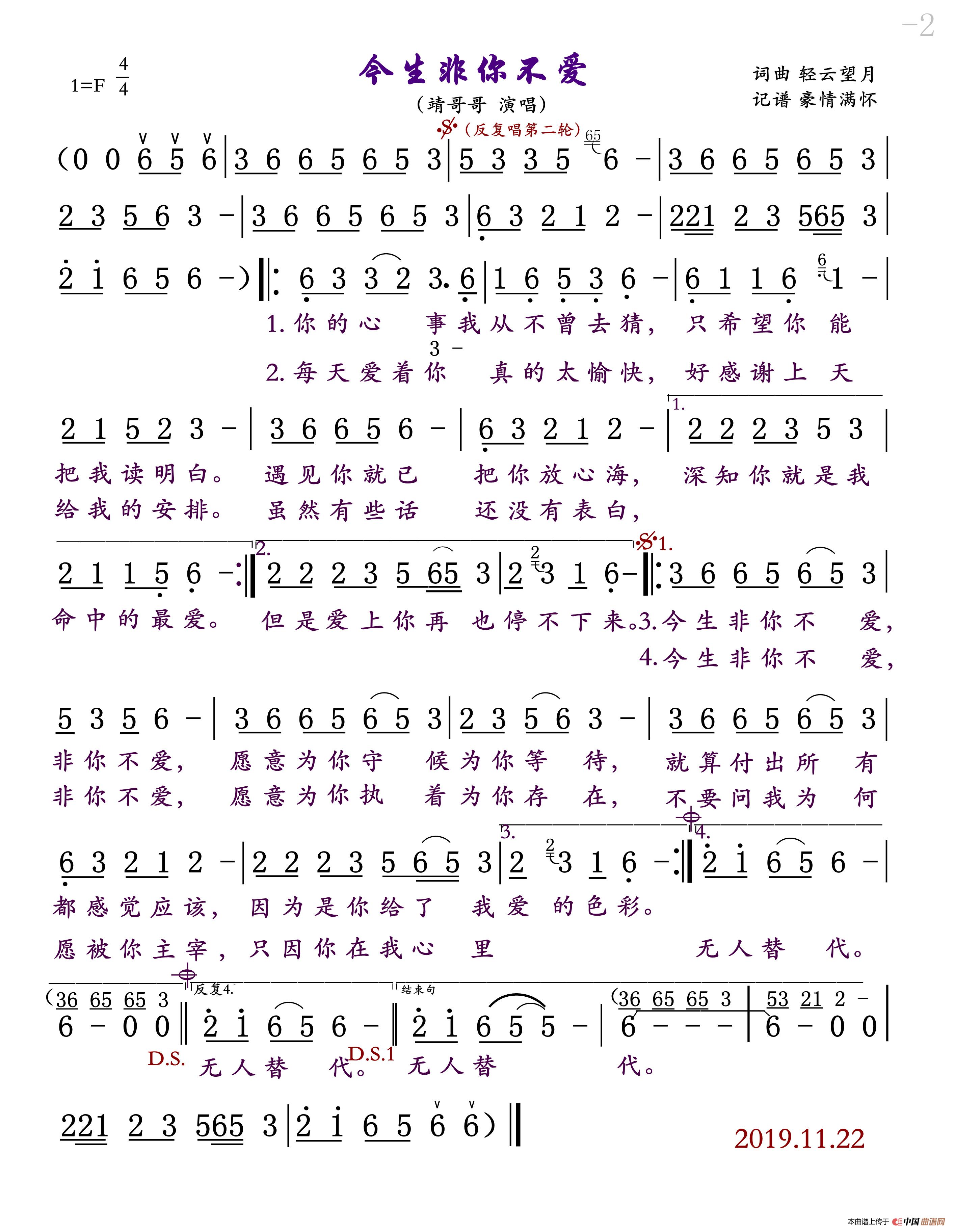 关于《今生非你不爱》曲谱的评论