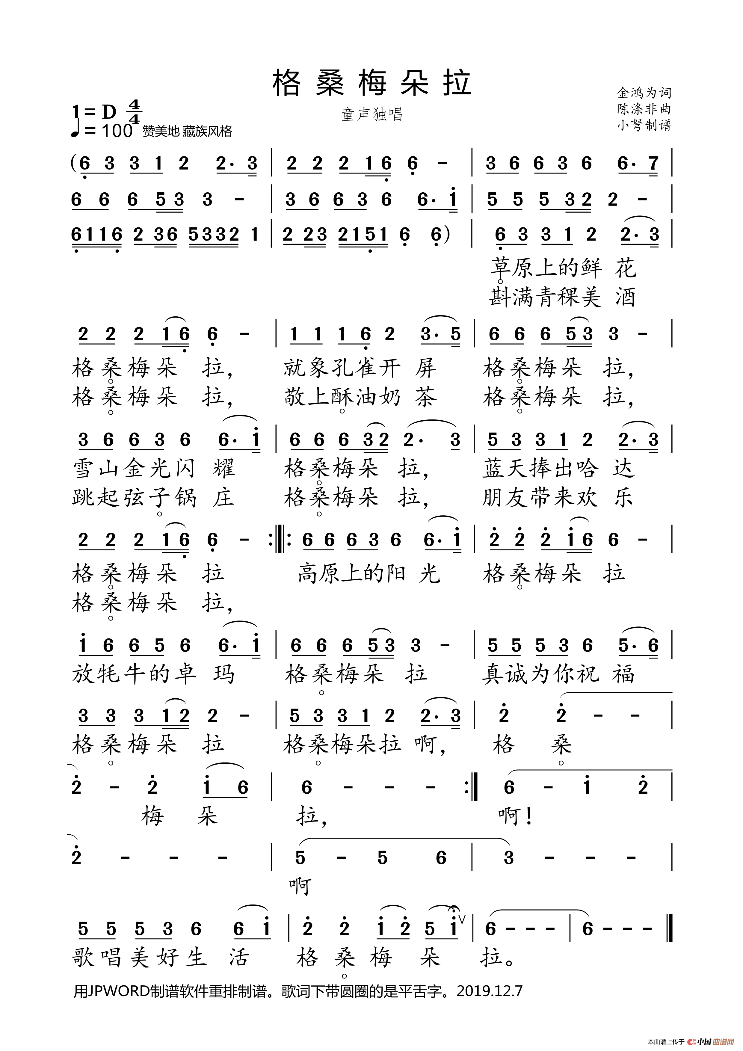 格桑梅朵拉啊,/格桑/梅朵/拉,啊!///