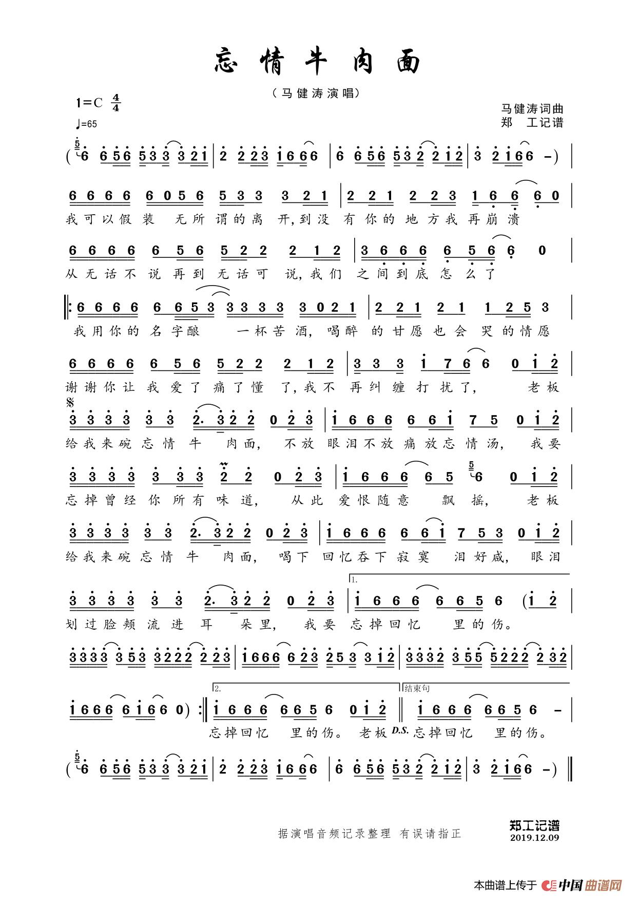 《忘情牛肉面》文本歌词