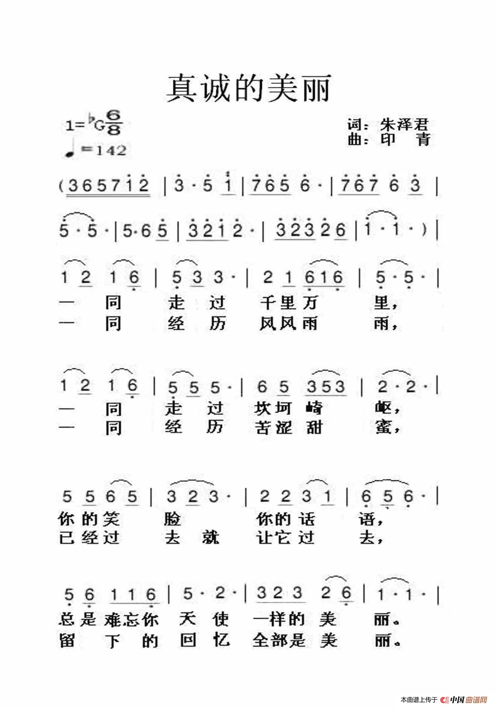 关于《真诚的美丽》曲谱的评论