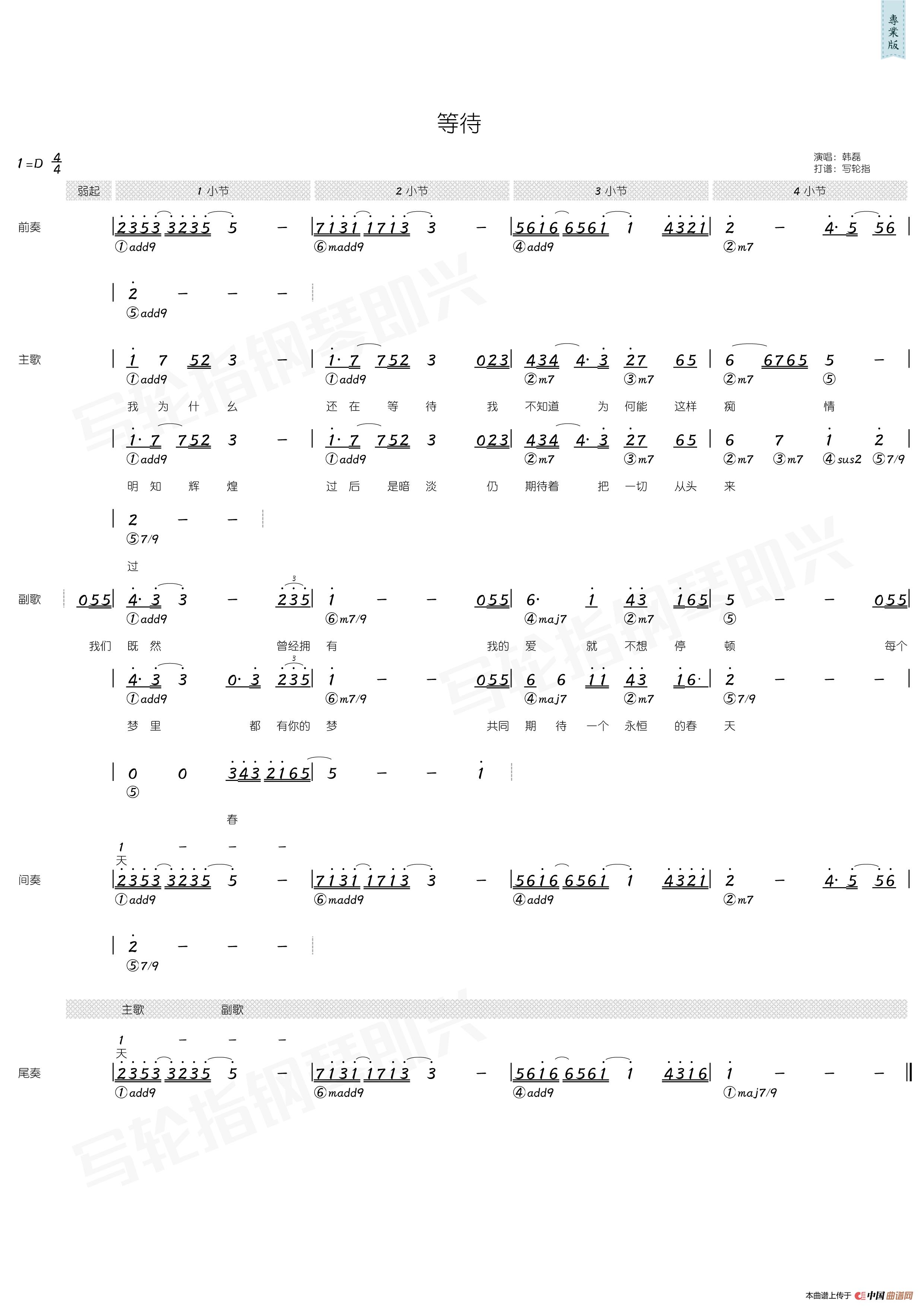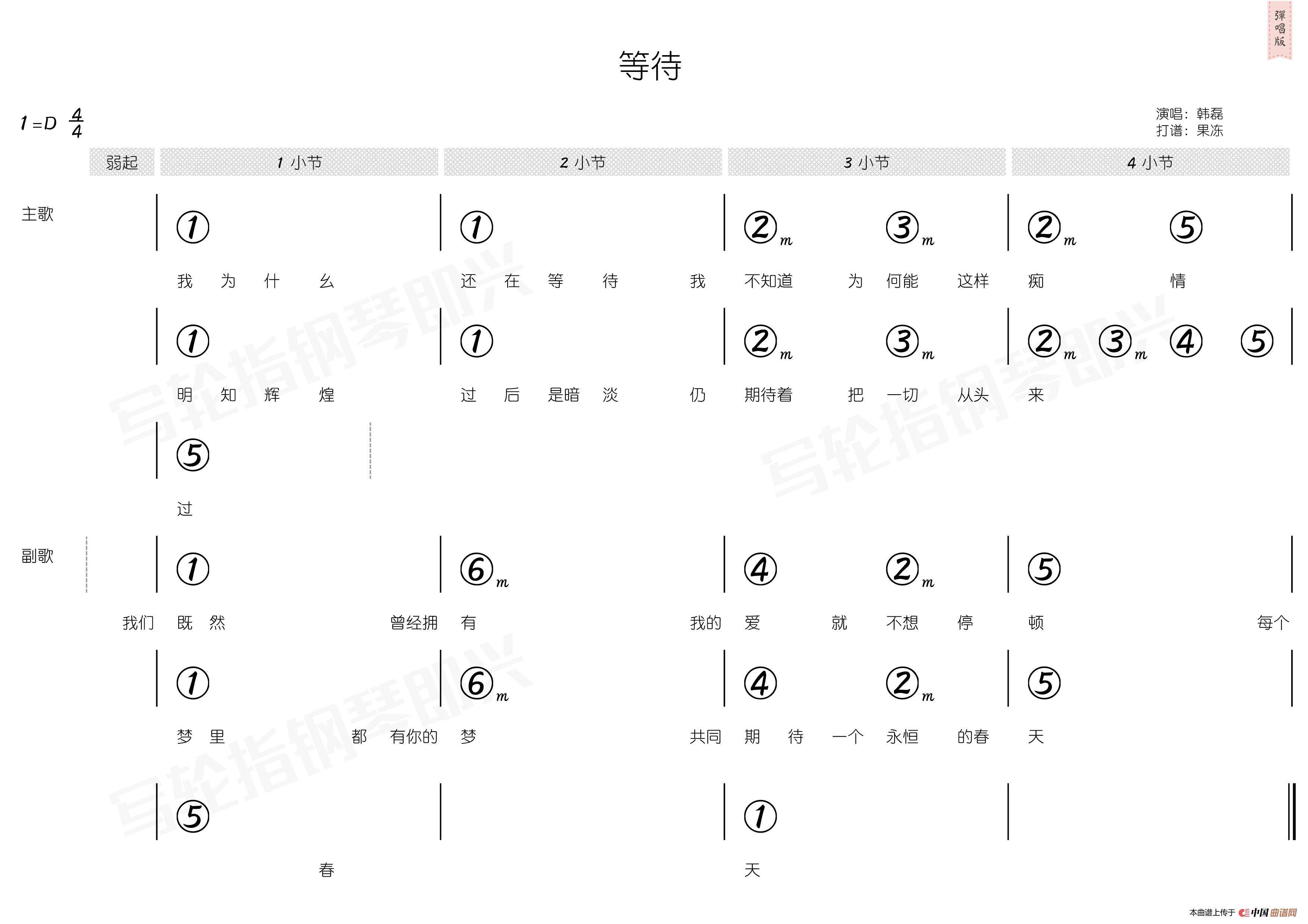 等待(简和谱)(1)_原文件名:D等待-韩磊(专业版).jpg等待(简和谱)(1)_原文件名:D等待-韩磊(弹唱版).jpg
