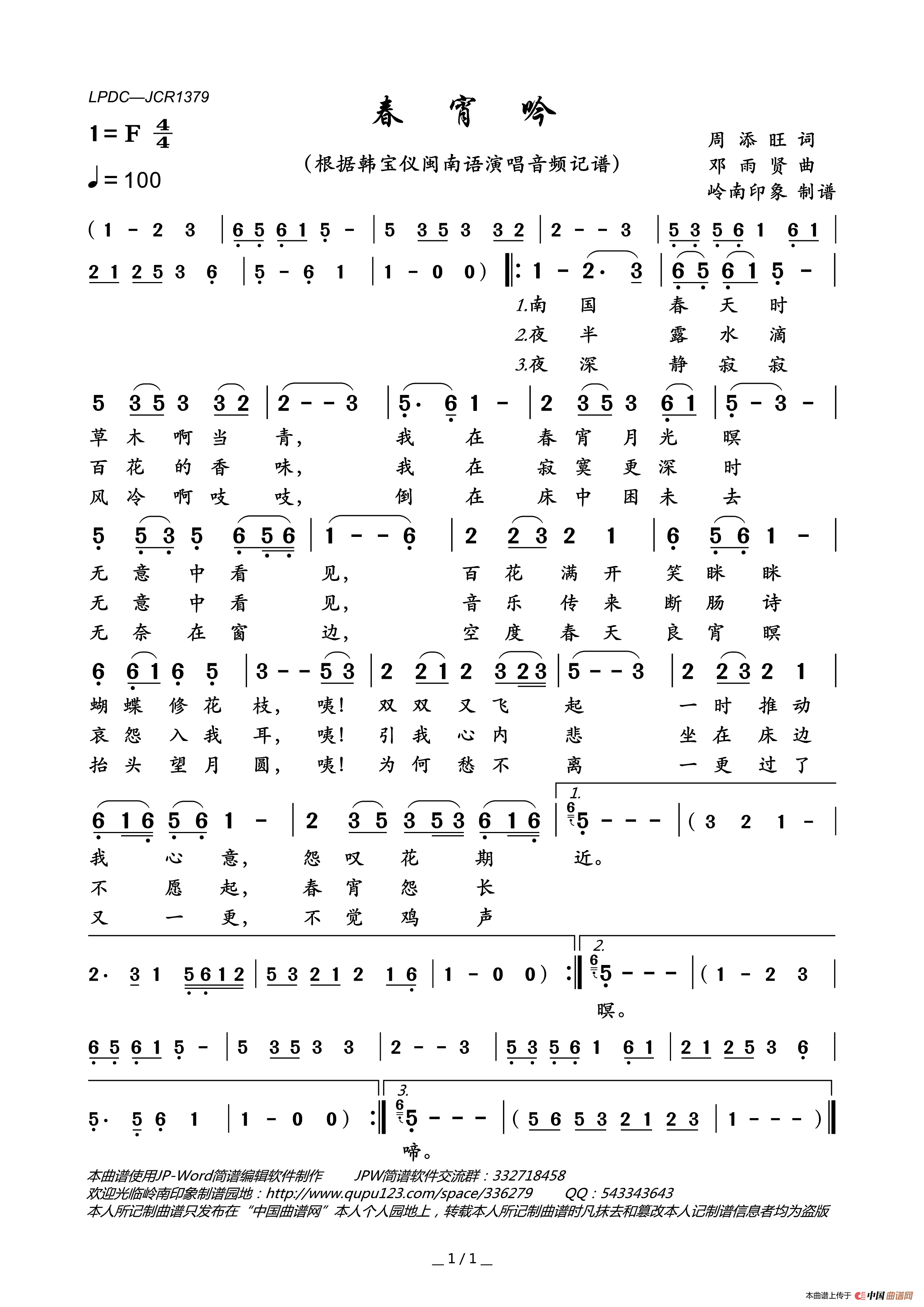 提示:在曲谱图片上单击右键,选择"图片另存为..."即可将曲谱保存到您的电脑中,打印时候可将图片插入到WORD中,调整合适大小打印即可。