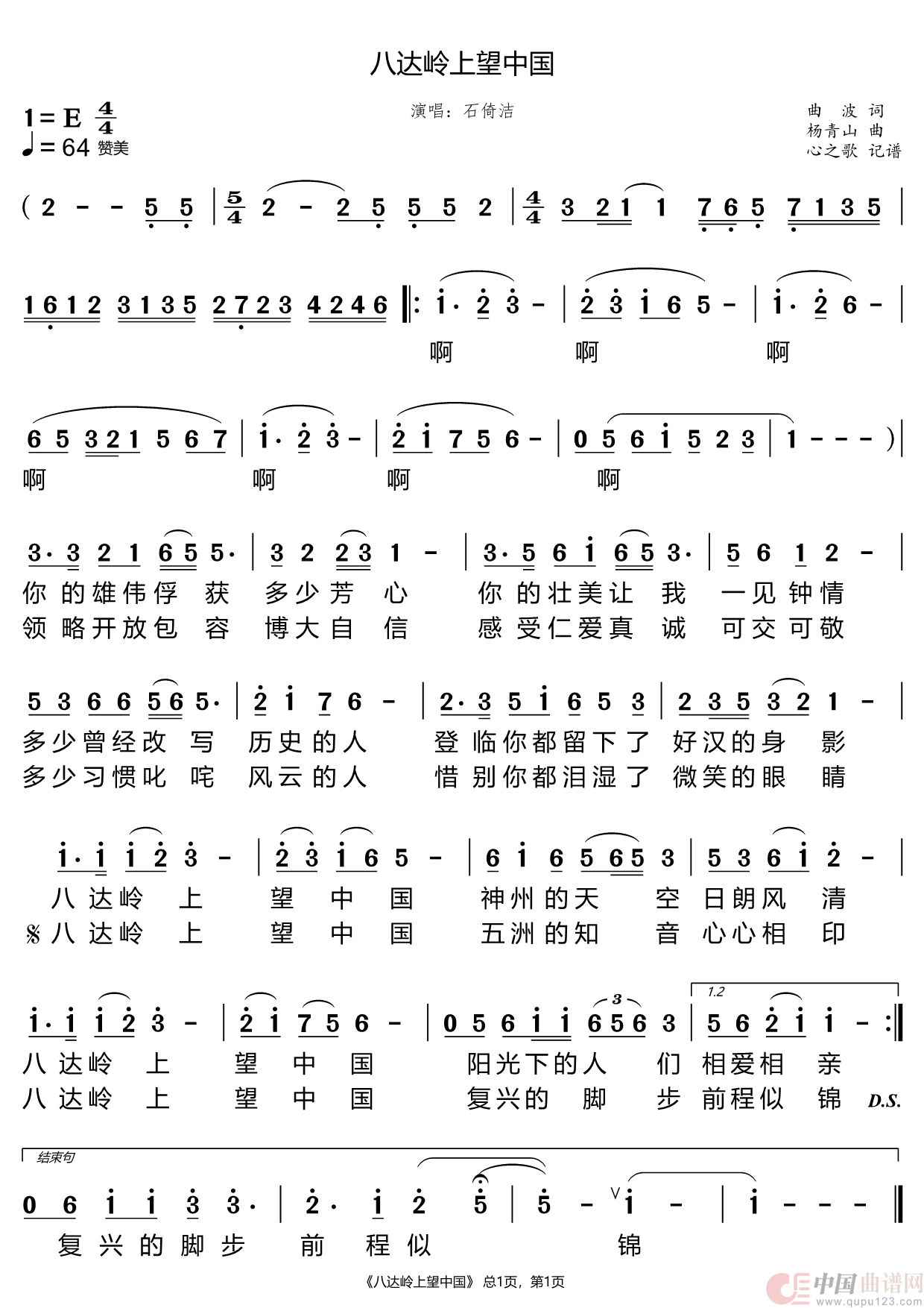 关于《八达岭上望中国》曲谱的评论